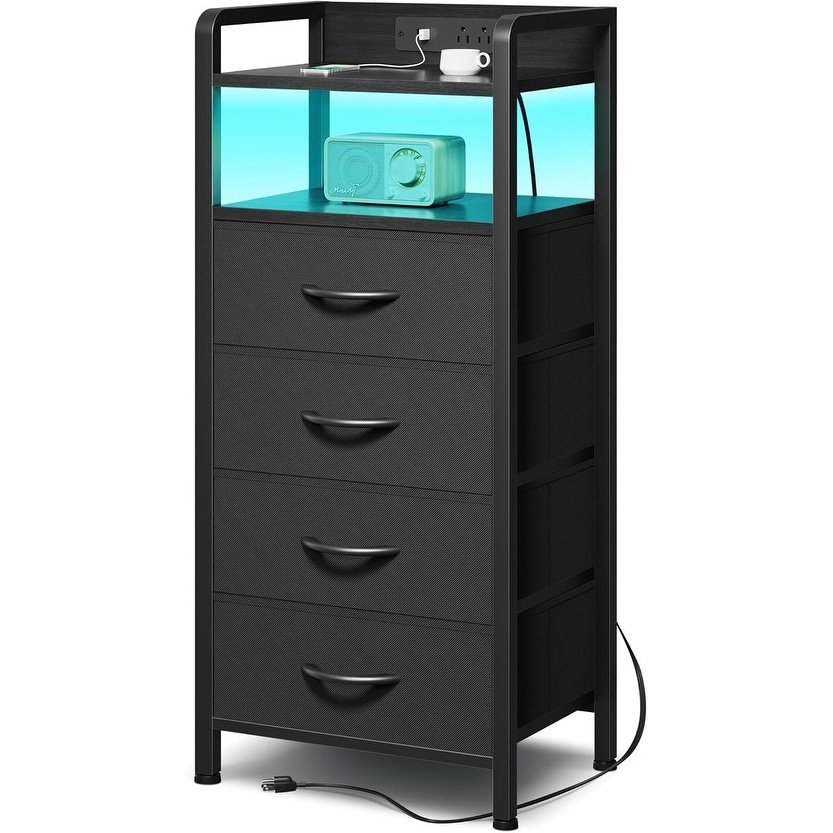 Modern LED Nightstand with Charging Station, 4 Drawers, USB Ports & AC Outlets