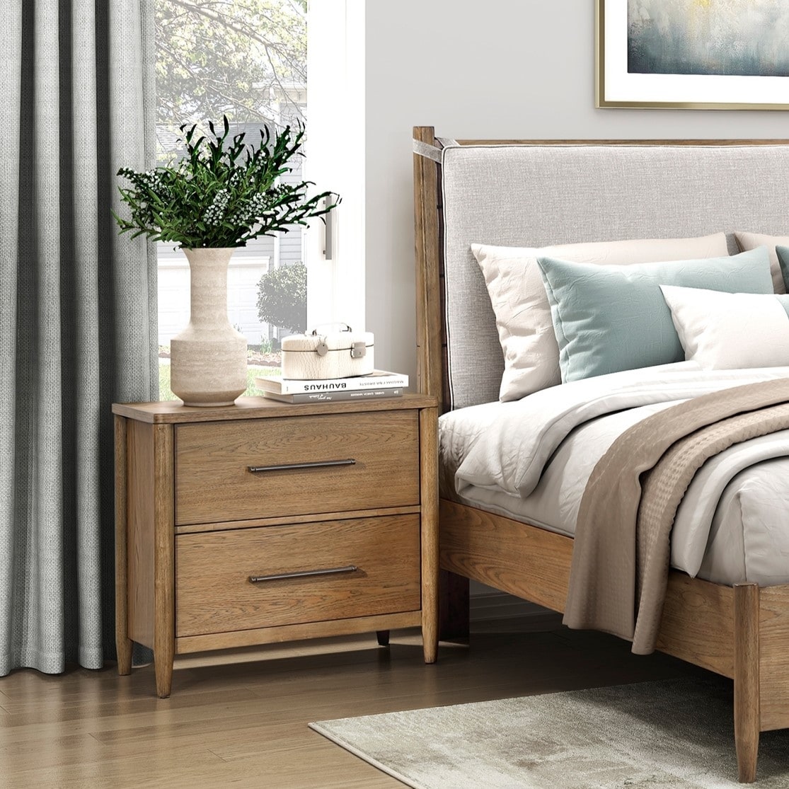 Mandolin Mid-Century Ash Walnut Wood 2-Drawer Nightstand