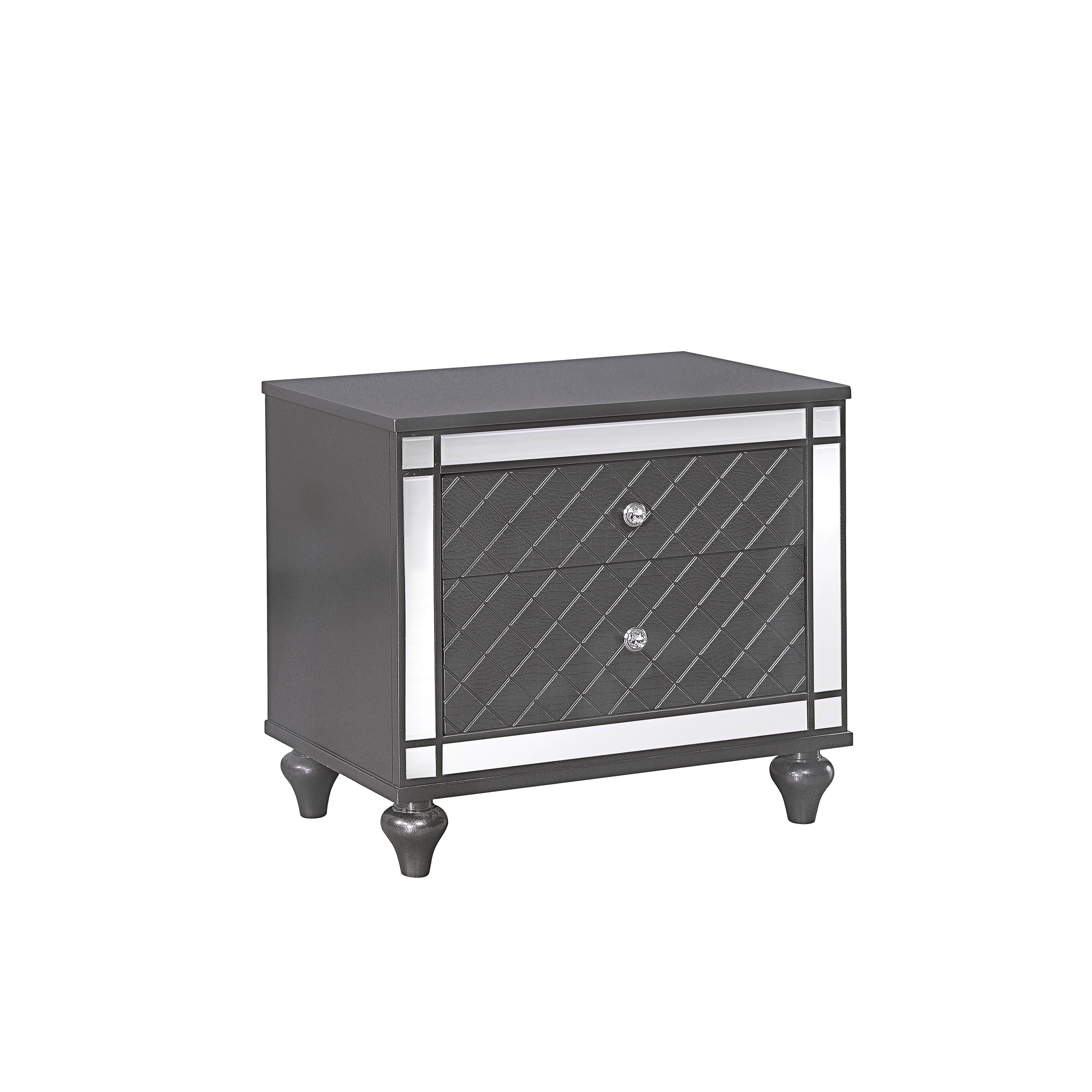 1Pc Glam Contemporary Style 2-Drawer Nightstand End Table with Mirror Plating Tapered Legs