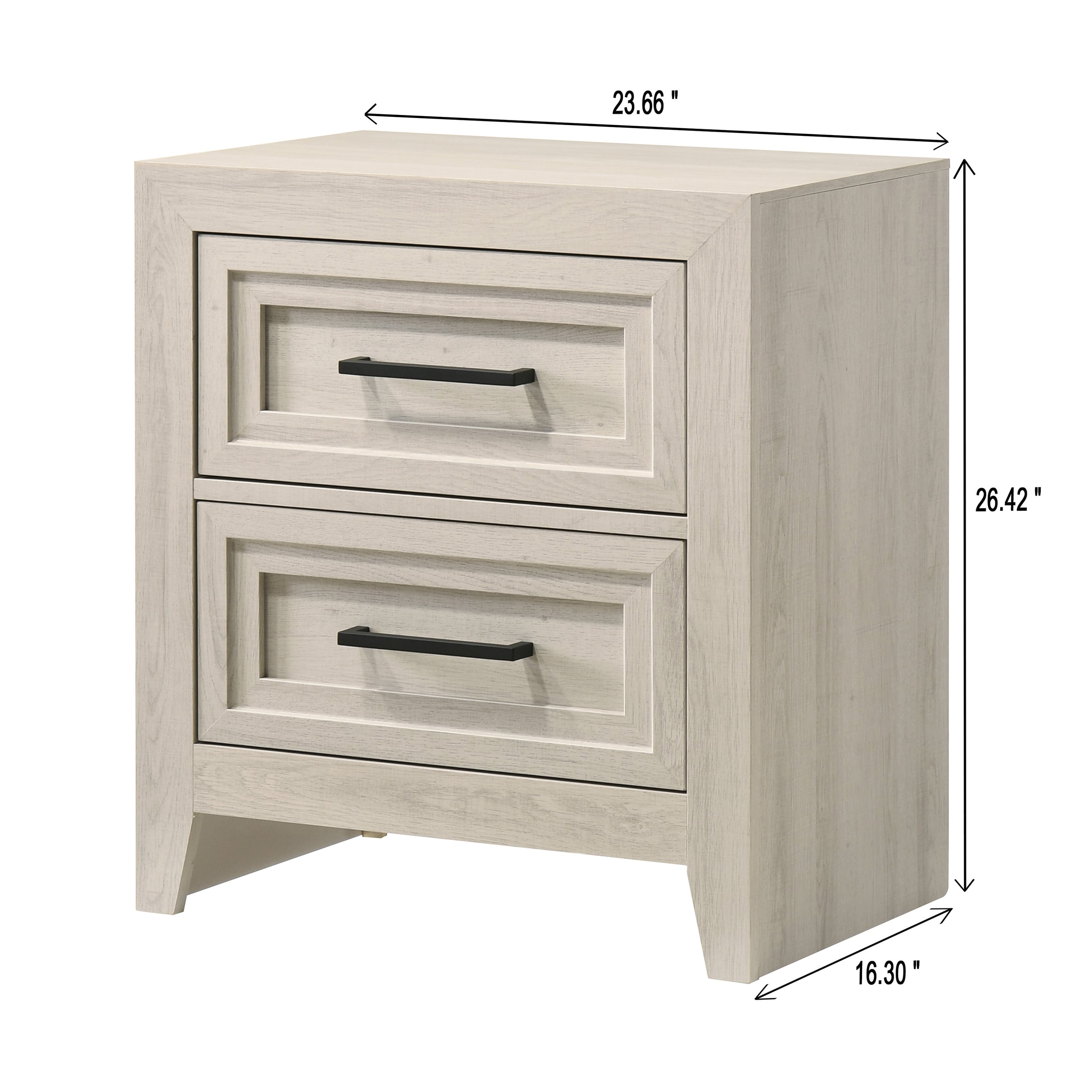 2-Drawer Nightstand with USB Charging Port, Whitewash Finish, 25.67 Inches Tall