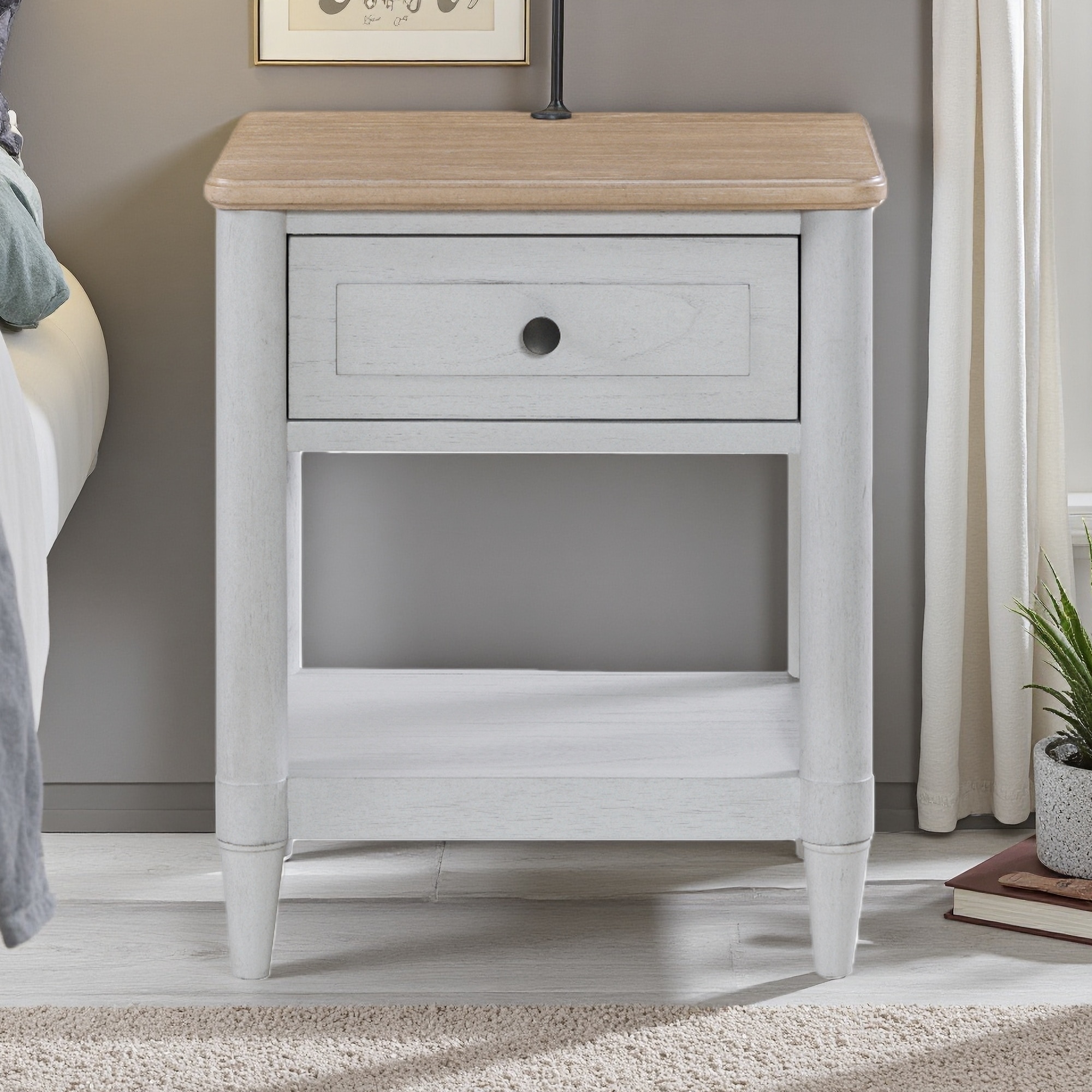 Two-Tone Acorn and White 2-Drawer Nightstand - Mid-Century Modern Bedside Storage Table