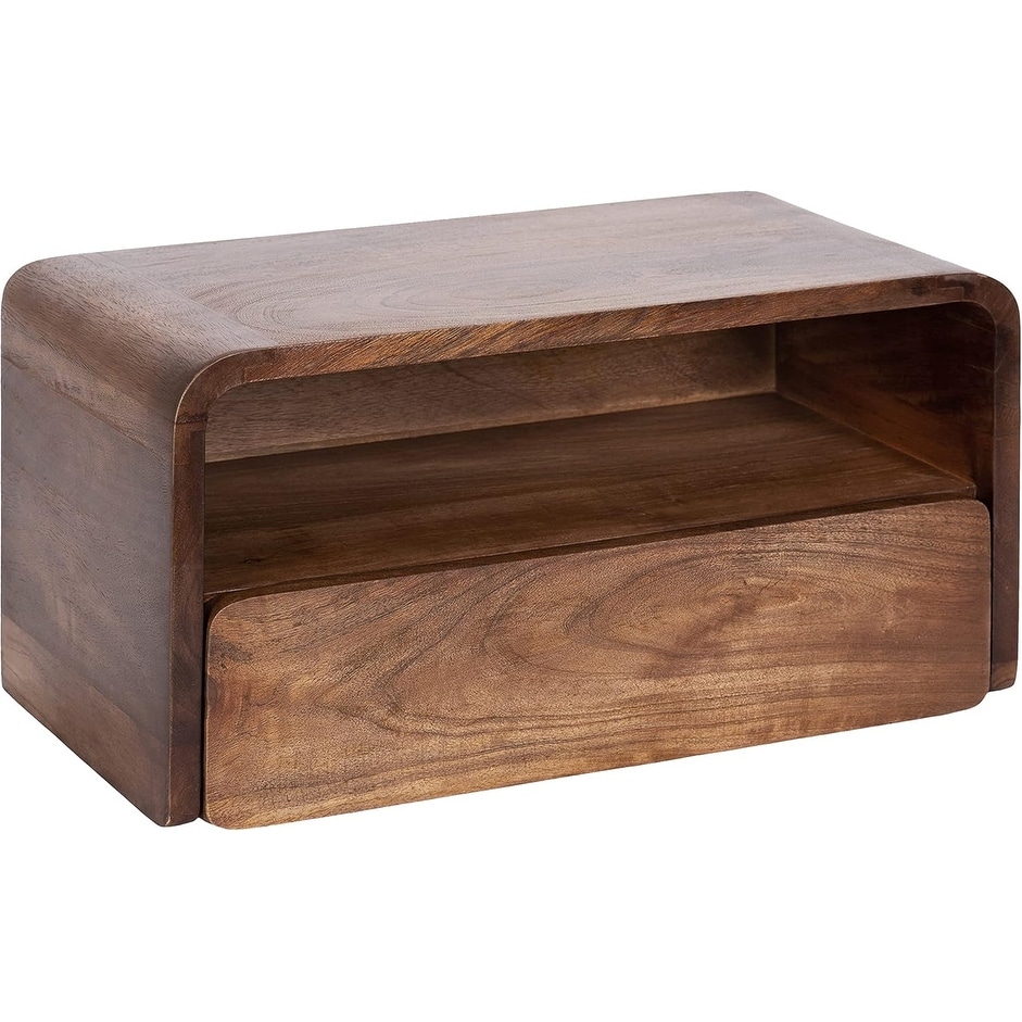Acacia Wood Nightstand with Drawer & Shelf - Modern Bedside Table
