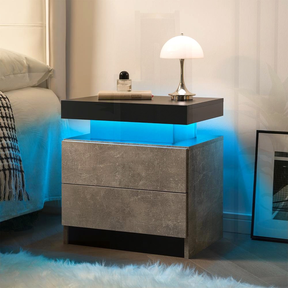 Modern LED Nightstand with 2 Drawers for Bedroom and Living Room
