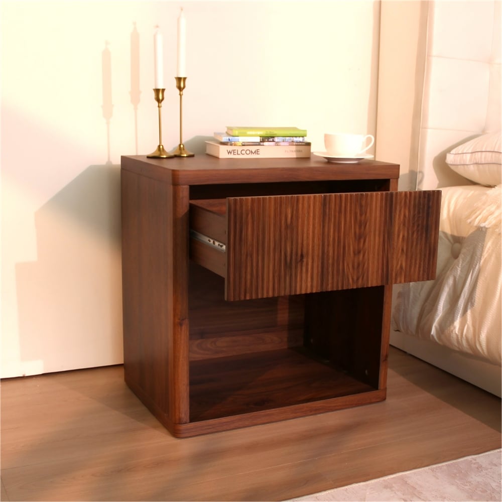 Night Stand Nightstand with Drawer Storage Fluted Bed Side Table