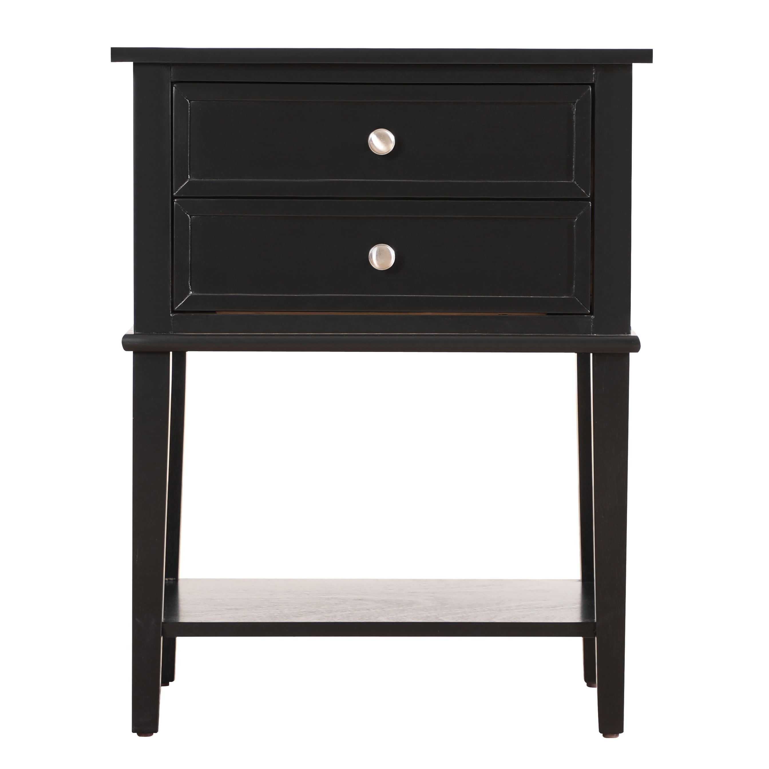 2 Drawer White Nightstand, 25 Inch Classic Wood Bedside Table with Dovetail Drawers and Refined Style