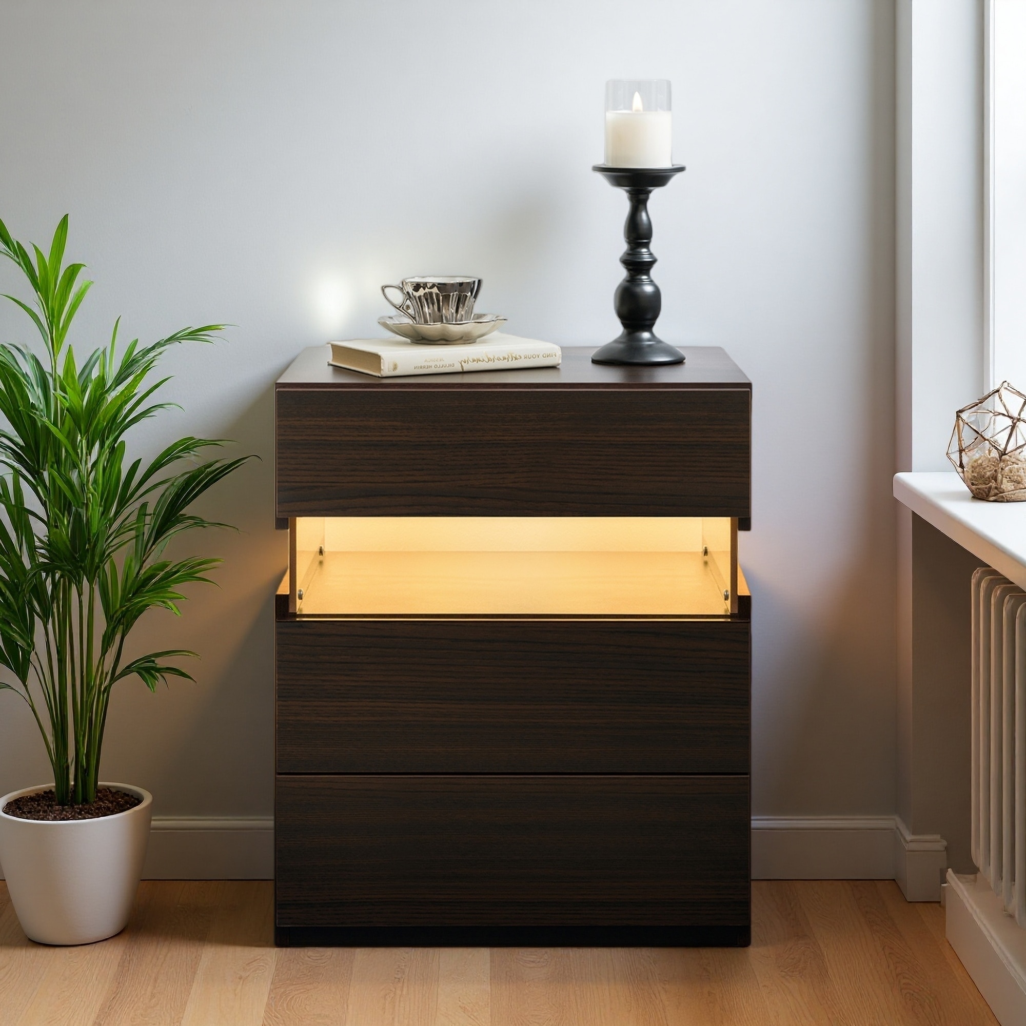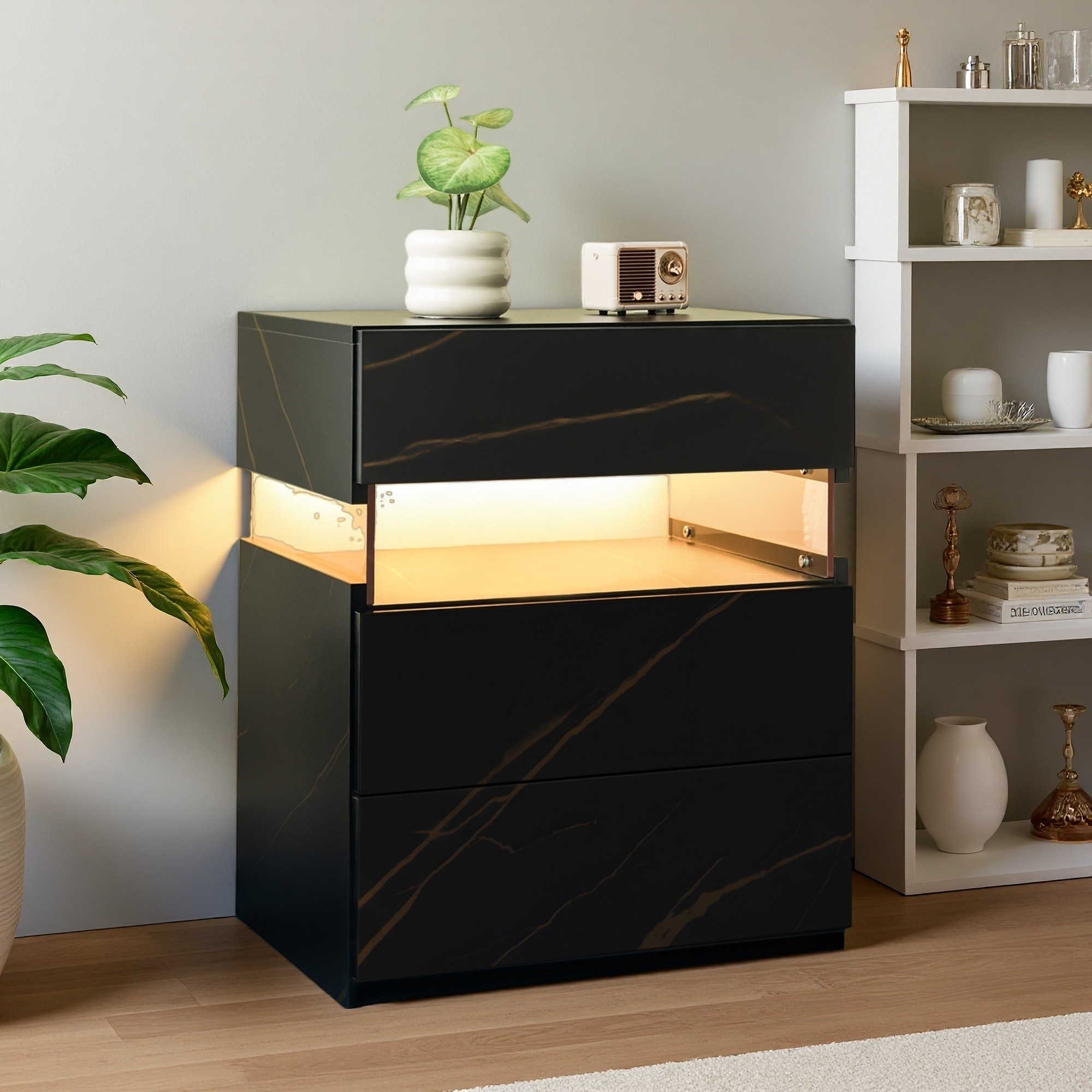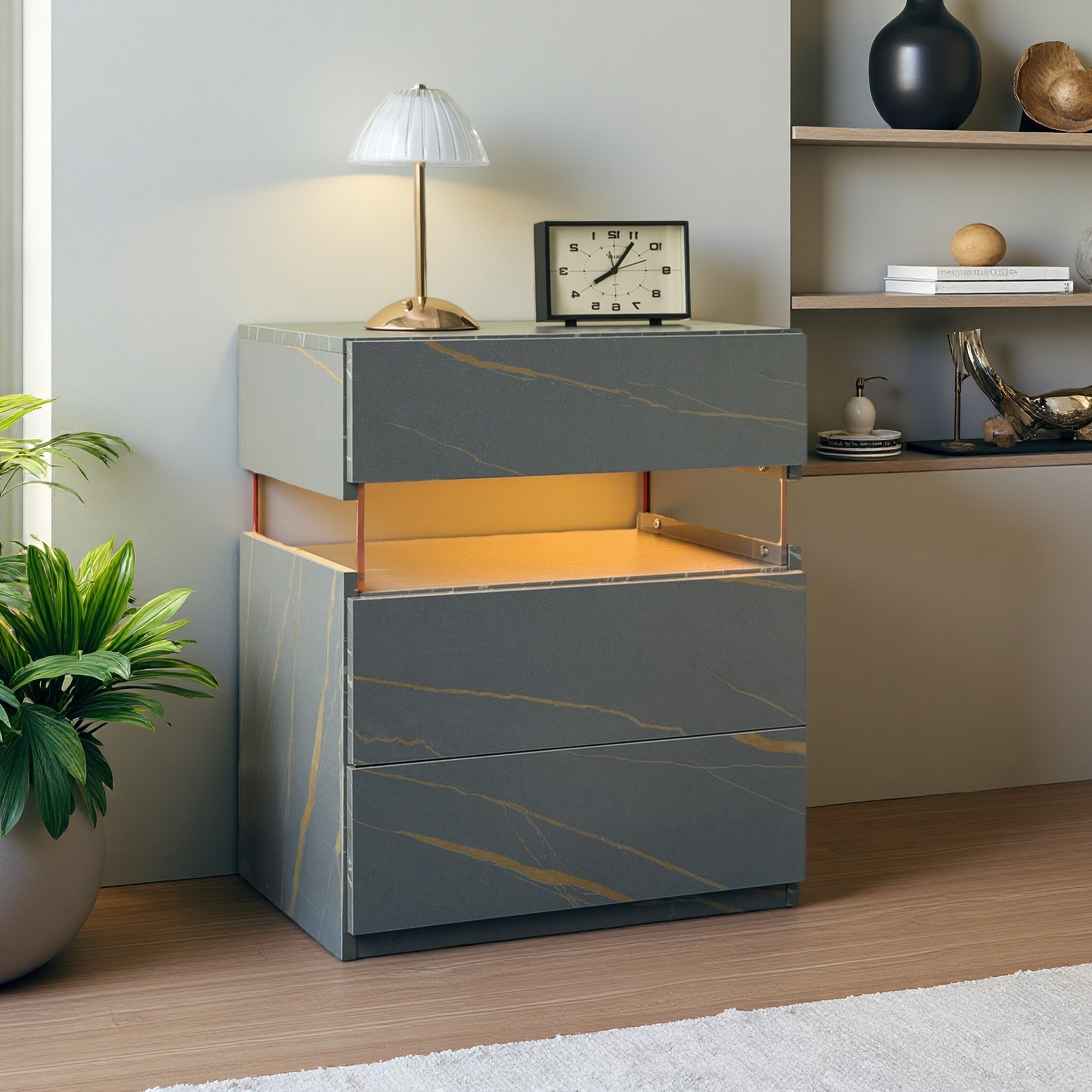 19.67"L LED 3-Drawer Acrylic Nightstand with RGB Light, Modern Bedside Table / End Table for Bedroom, Living Room, Office