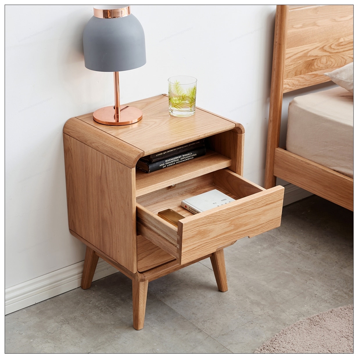 Classic 1pc Nightstand Bedroom Furniture Solid wood Nickel Hanging Pulls 2-Drawers Bedside Table