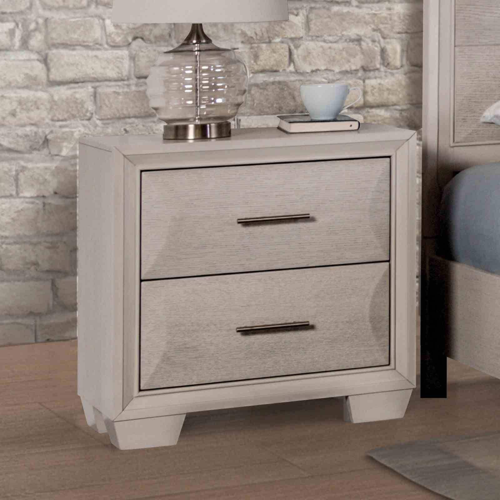 Cream 2 Drawer 15.35 in. W Nightstand with Angled Legs