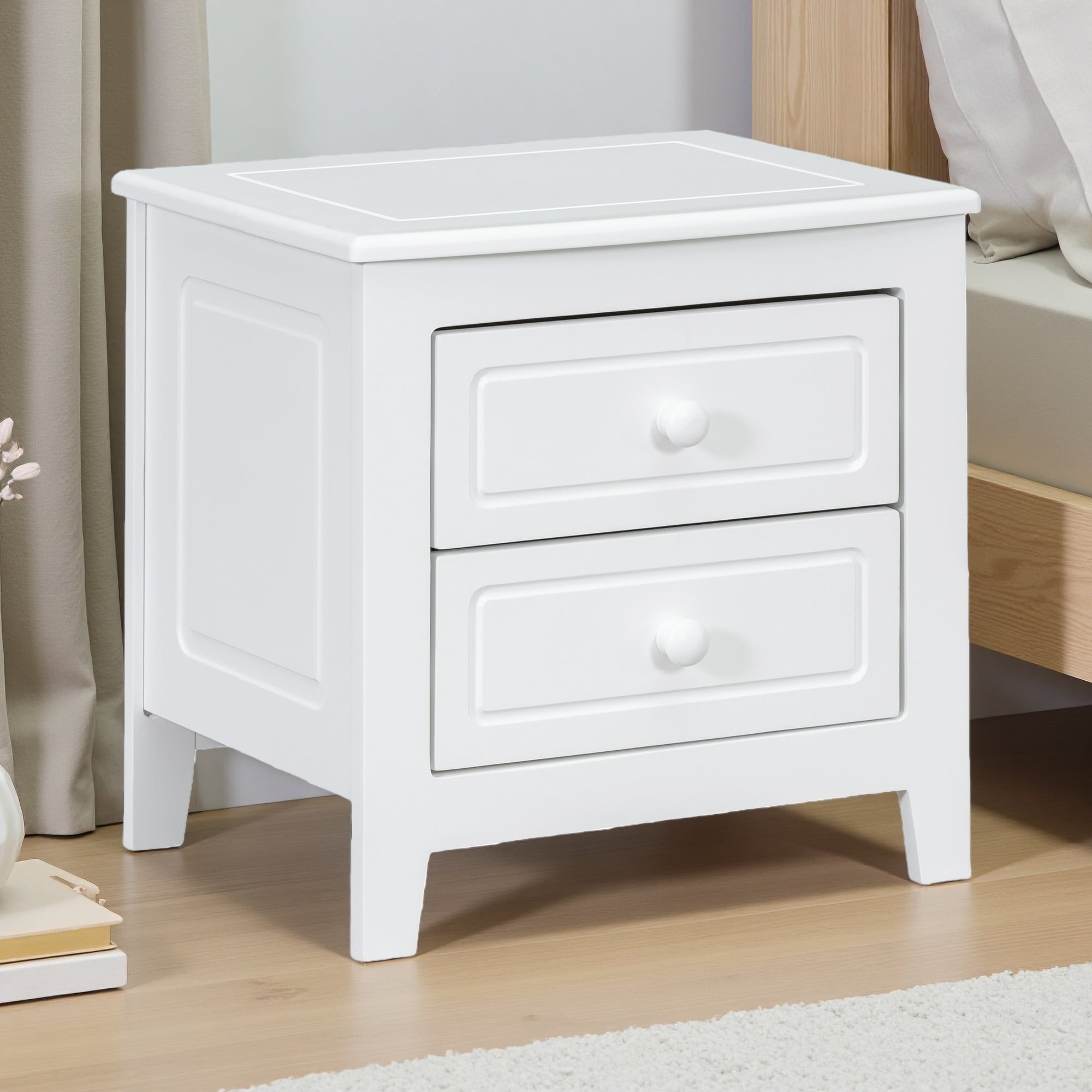 White/Black 2 Drawer 23.5 in. W Nightstand with Sturdy Hardware and Ample Storage