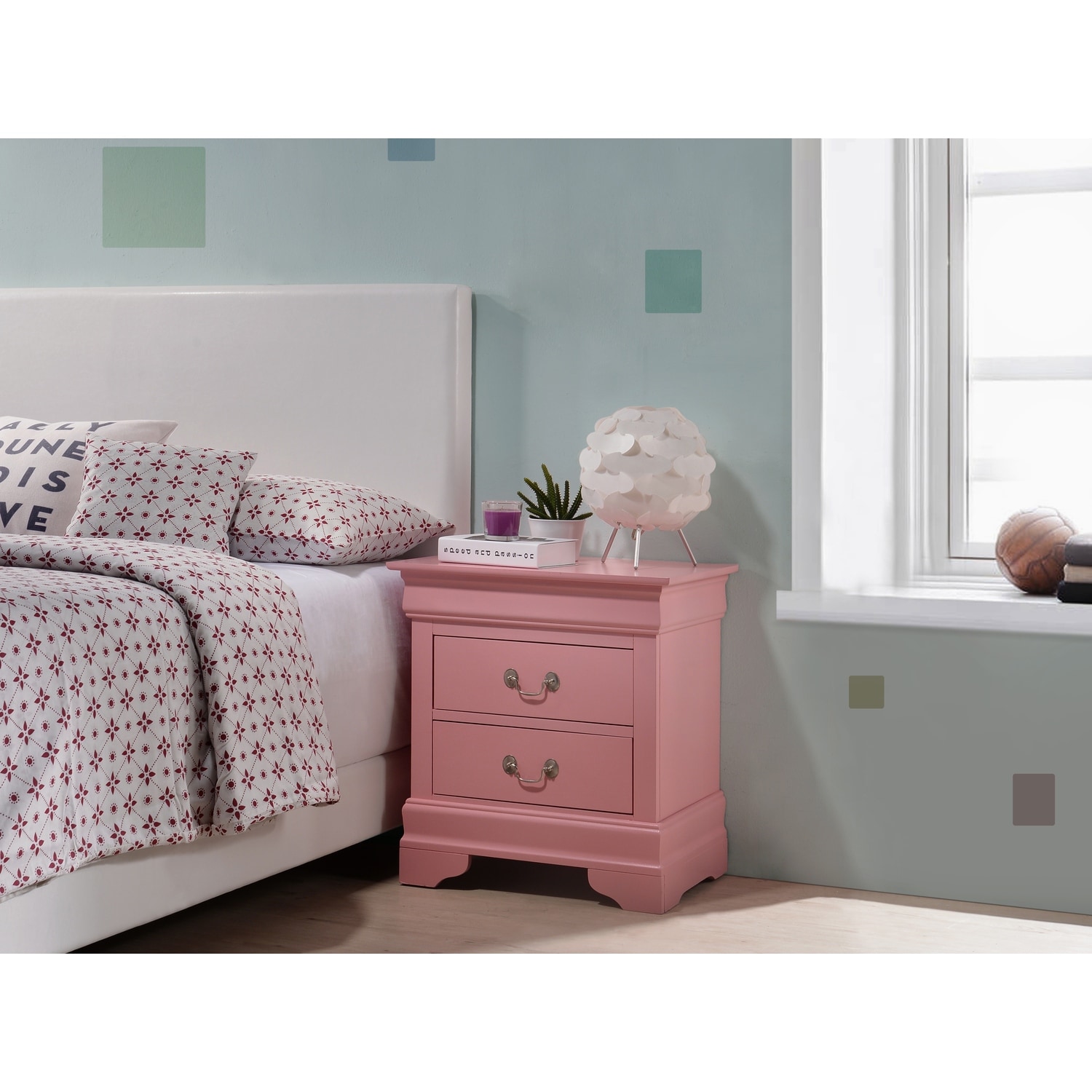 Pink Nightstand 24x22x16 with One Drawer, Compact Bedside Table for Storage and Bright Stylish Bedroom Accent Furniture