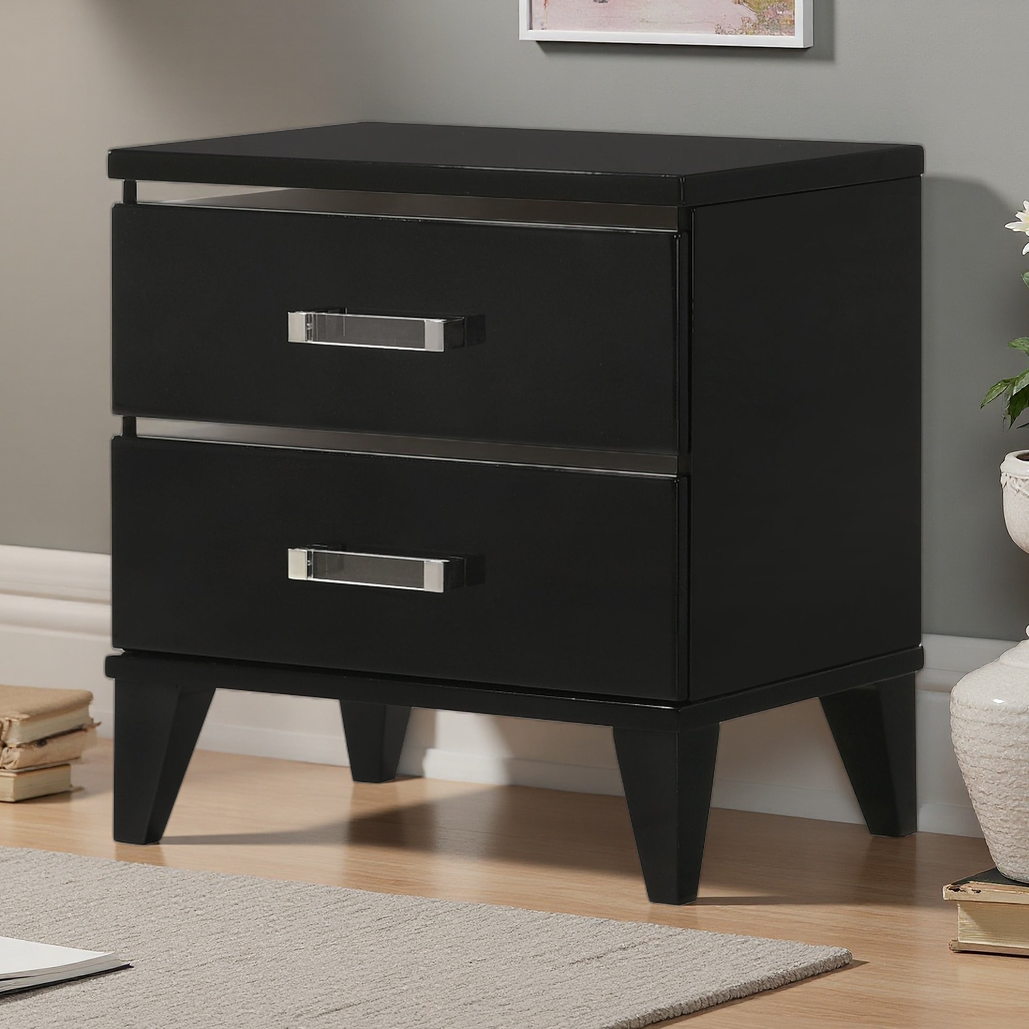 23"L Rubber Wood & Engineered Wood Modern 2-Drawer Nightstand with 3/4 Extension Side-Center Glides, Safety Stop & Tapered Legs