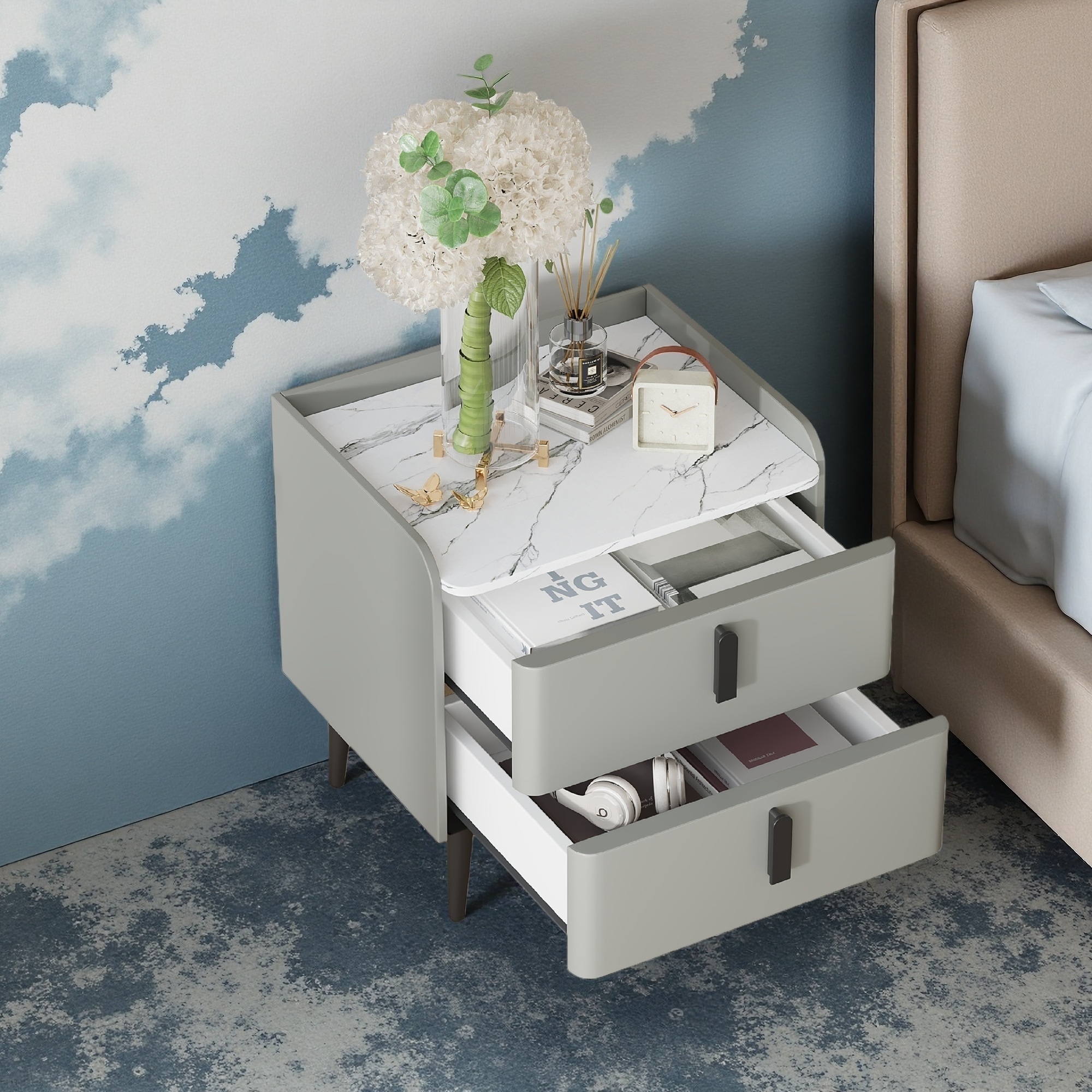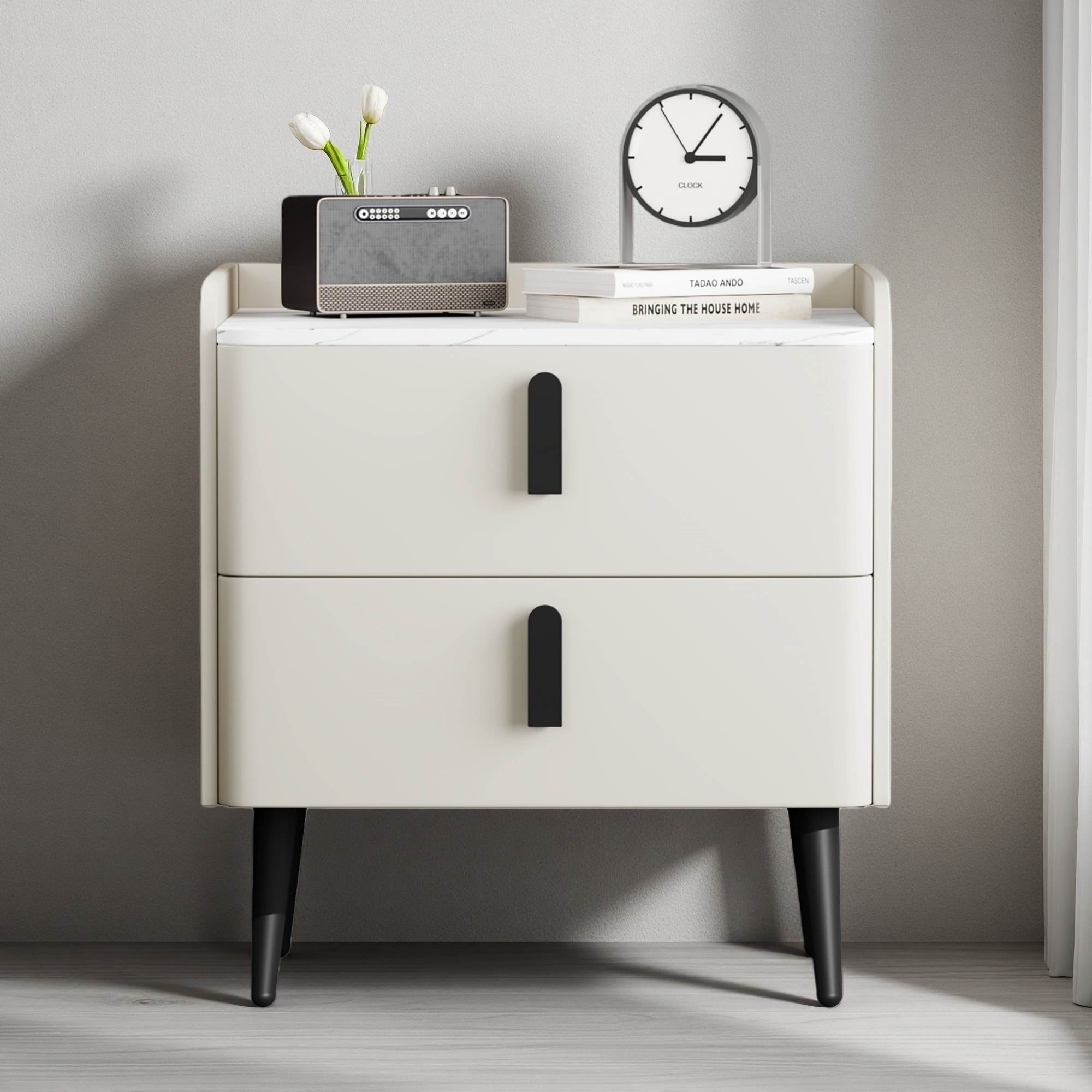 19.88"L PU MDF Marble-Pattern Top Nightstand with 2 Drawers, Modern Bedside Table with Raised Guard & Scratch-Resistant Legs