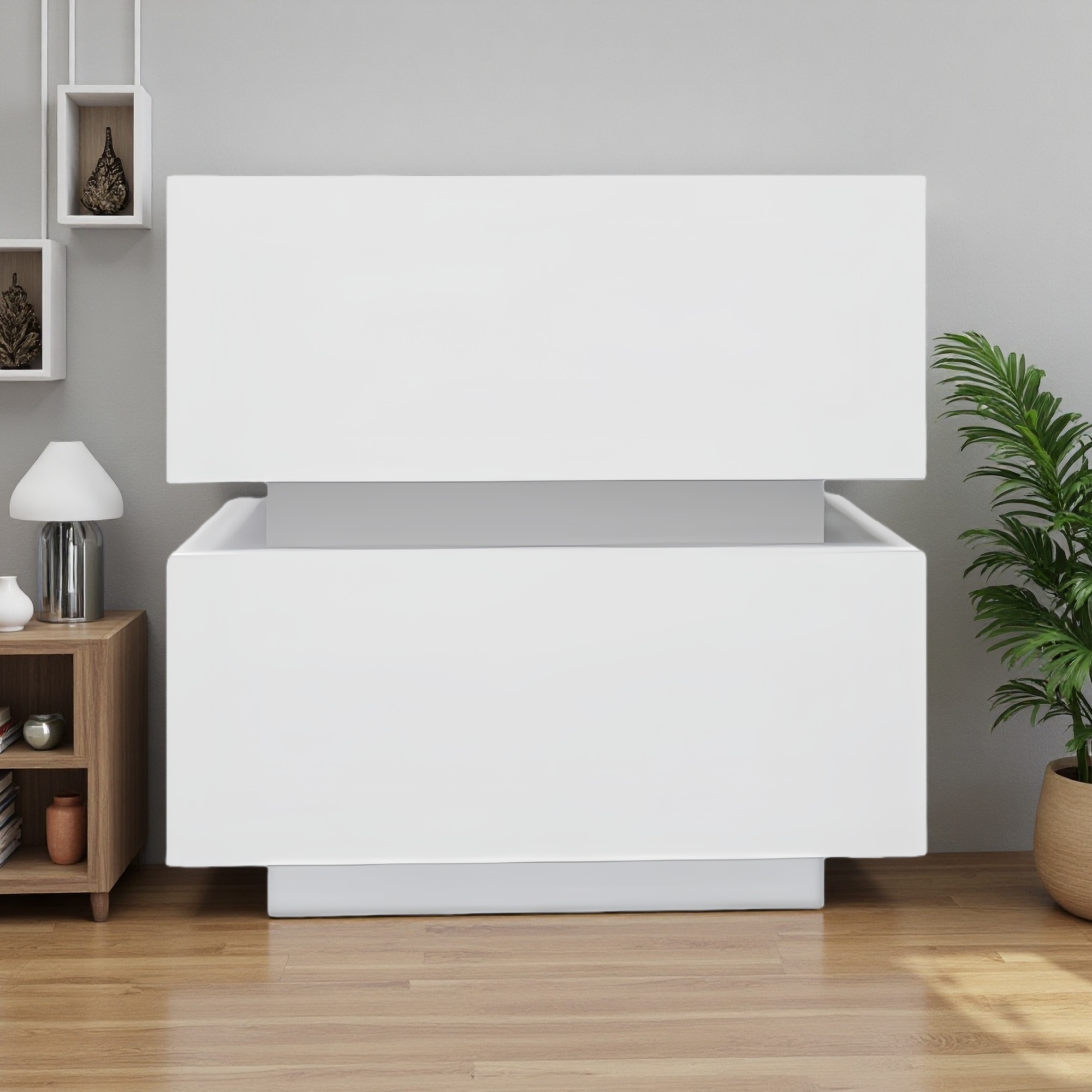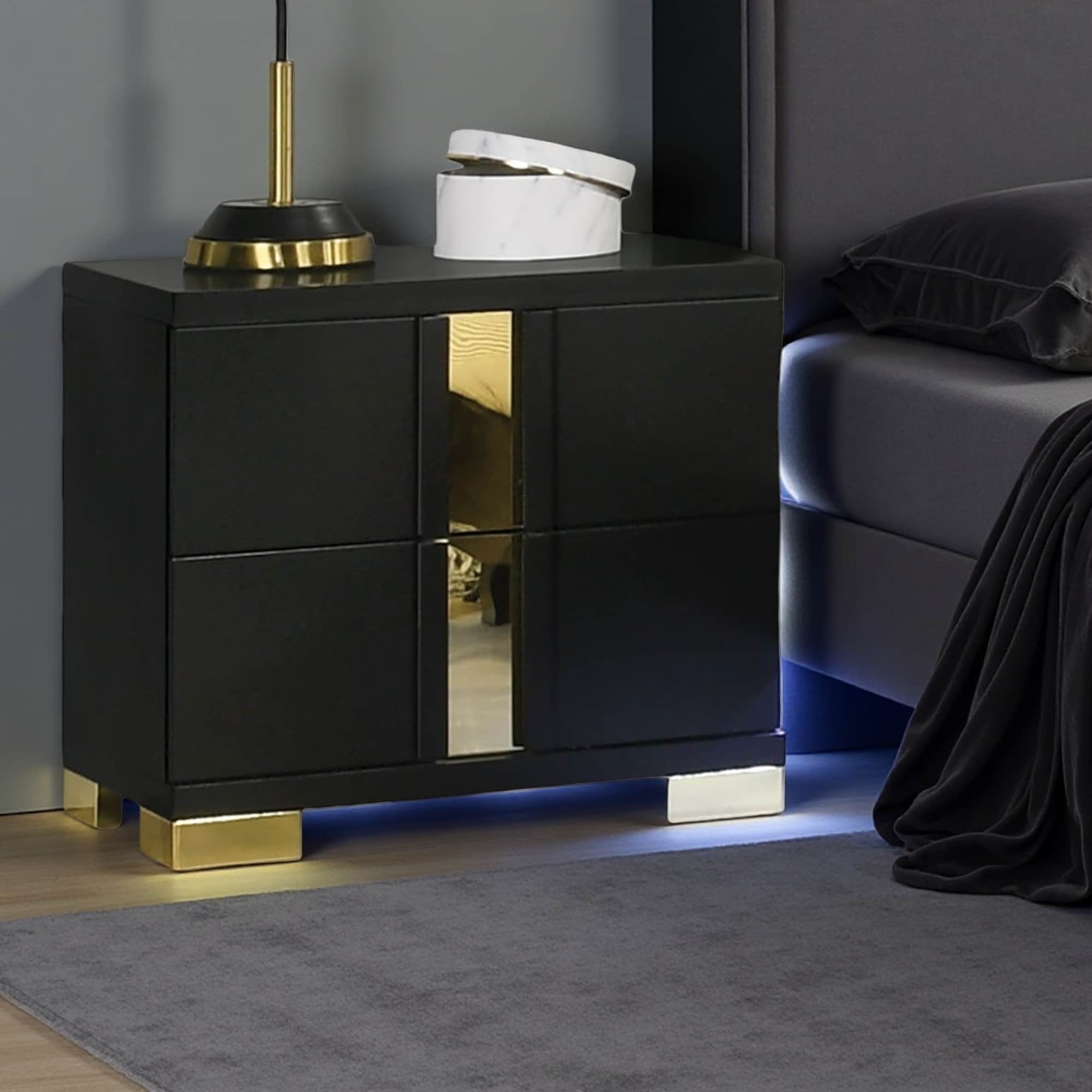 17.7"L Compact High-Gloss Particleboard Nightstand with RGB LED Lights & Bluetooth/APP Control — Modern 2-Drawer Bedside Table