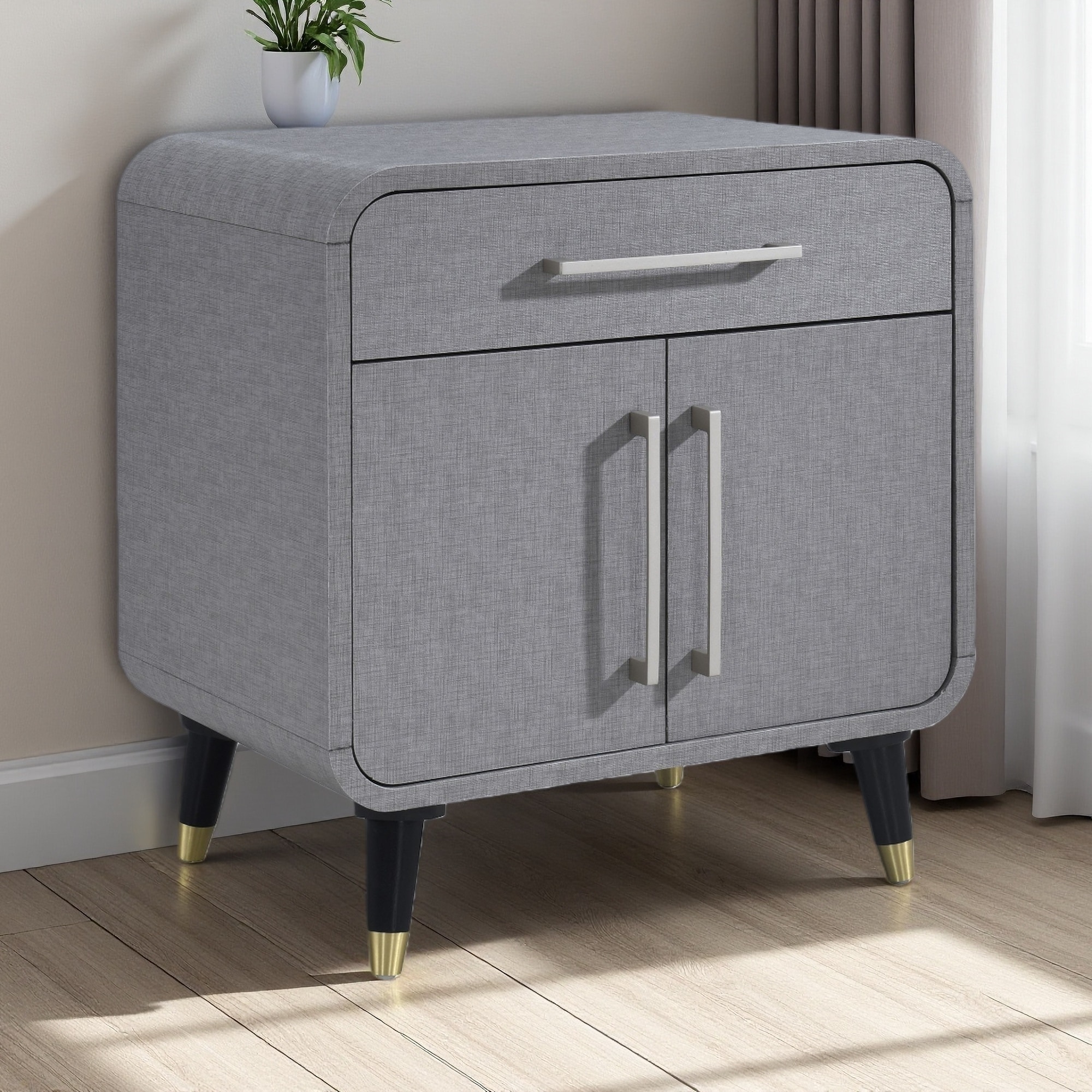 25.5"L PU Wrapped One Drawer Nightstand with Storage Cabinet, Wooden Accent Legs & Felt Lined Drawer
