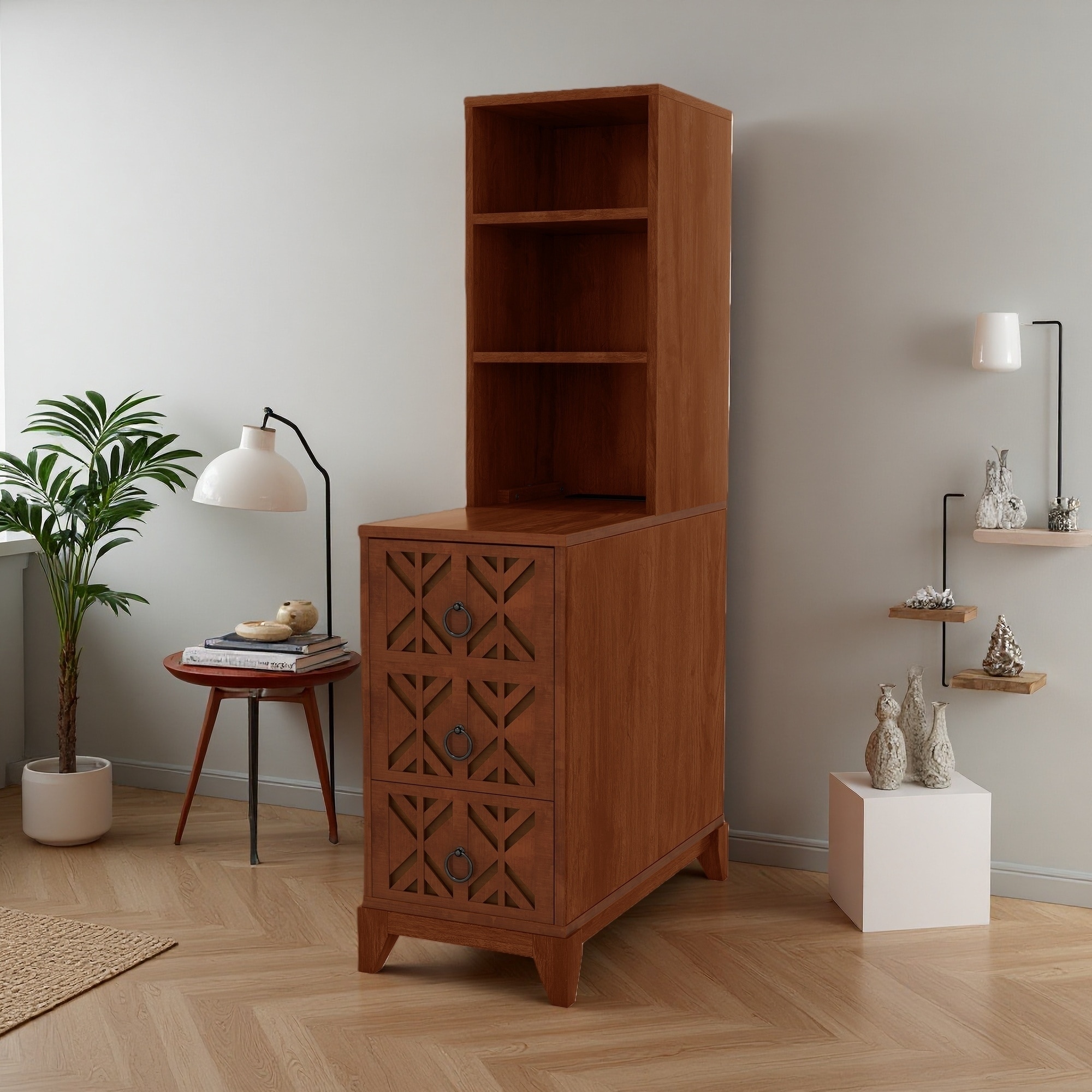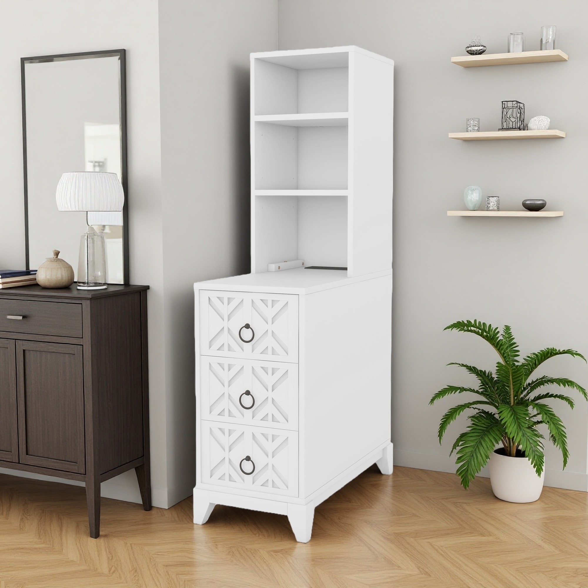 End Table with Drawers, Corner Table with Open Shelves, Tall Side Table for Bedroom and Corner