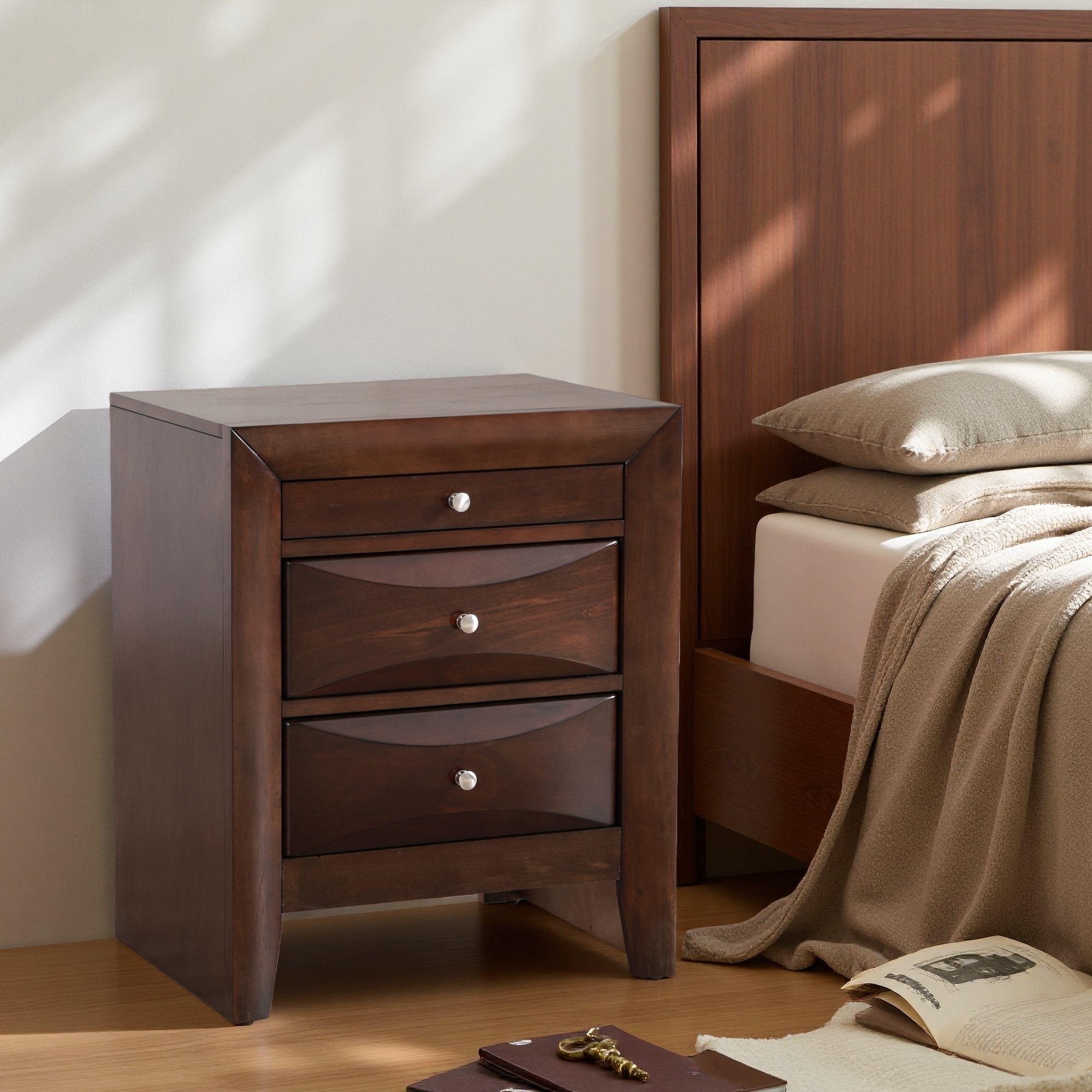 23"L Contemporary Nightstand, Curved Front 3-Drawer Bedside Table with Ample Storage, Fully Assembled