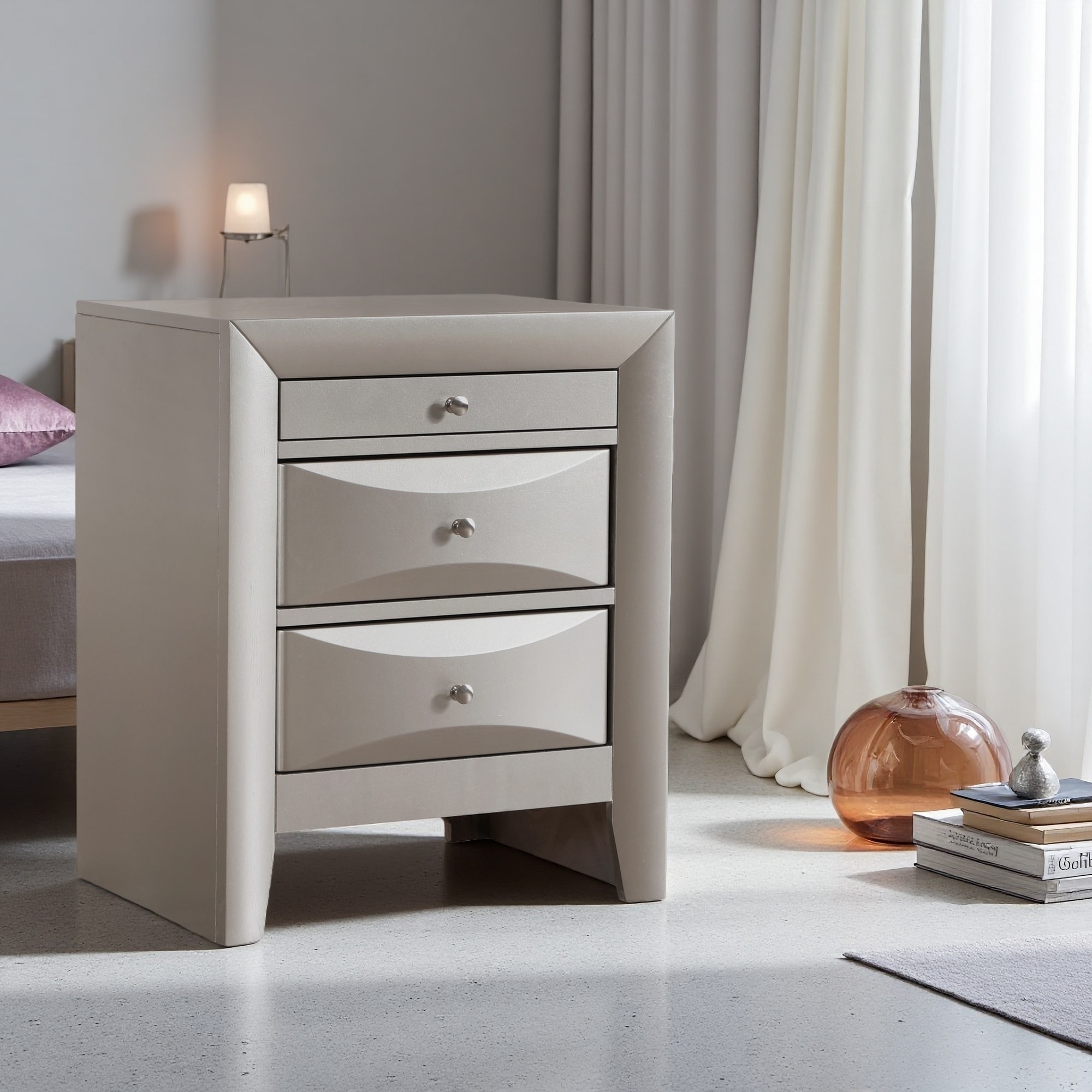 23"L Contemporary Nightstand, Curved Front 3-Drawer Bedside Table with Ample Storage, Fully Assembled
