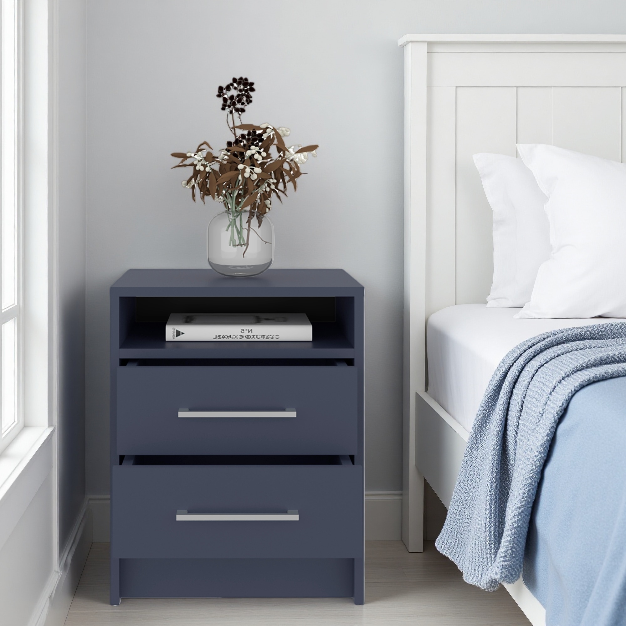 15.7"L Nightstand 2 Drawers with 1 Open Shelf, Compact Bedroom Storage