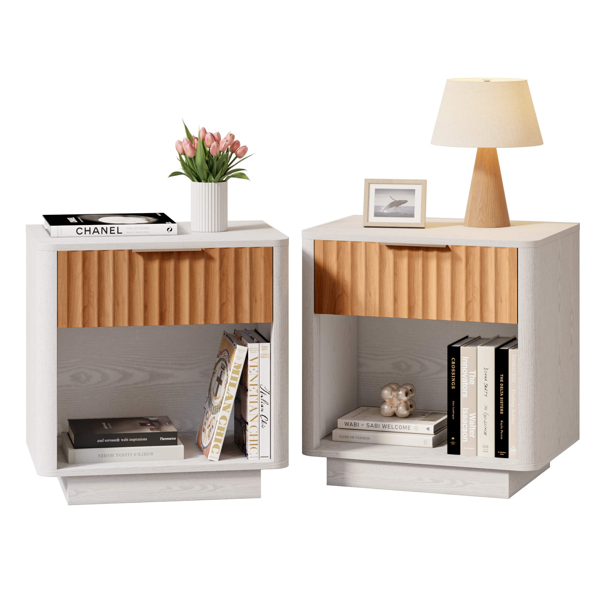 White And Light Oak 2-Drawer 1-Shelf Rectangle Nightstand