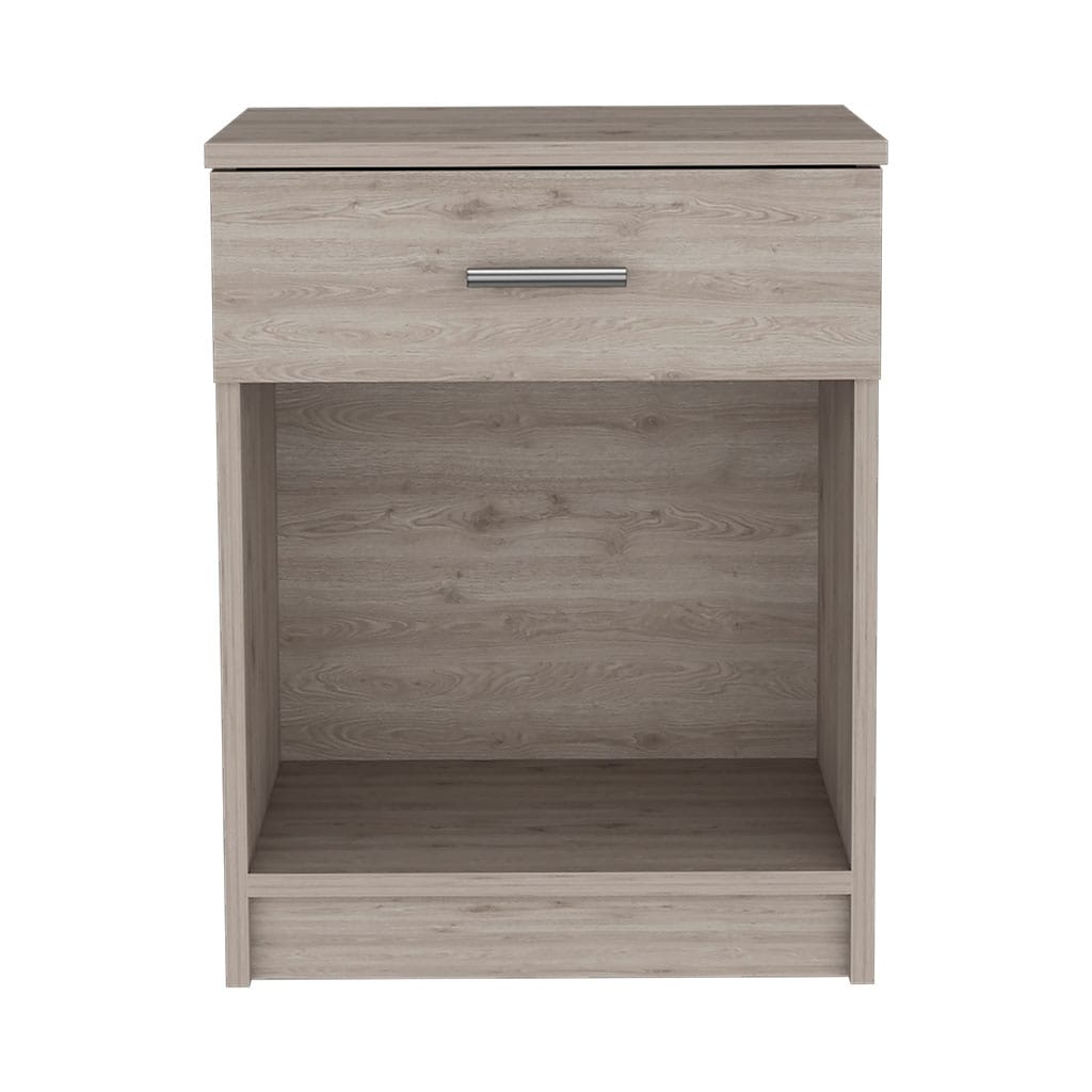 Nightstand, Single Drawer, Lower Shelf, Light Gray Finish