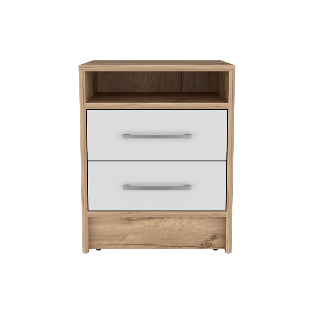 Nightstand, Two Drawers, White / Light Oak Finish