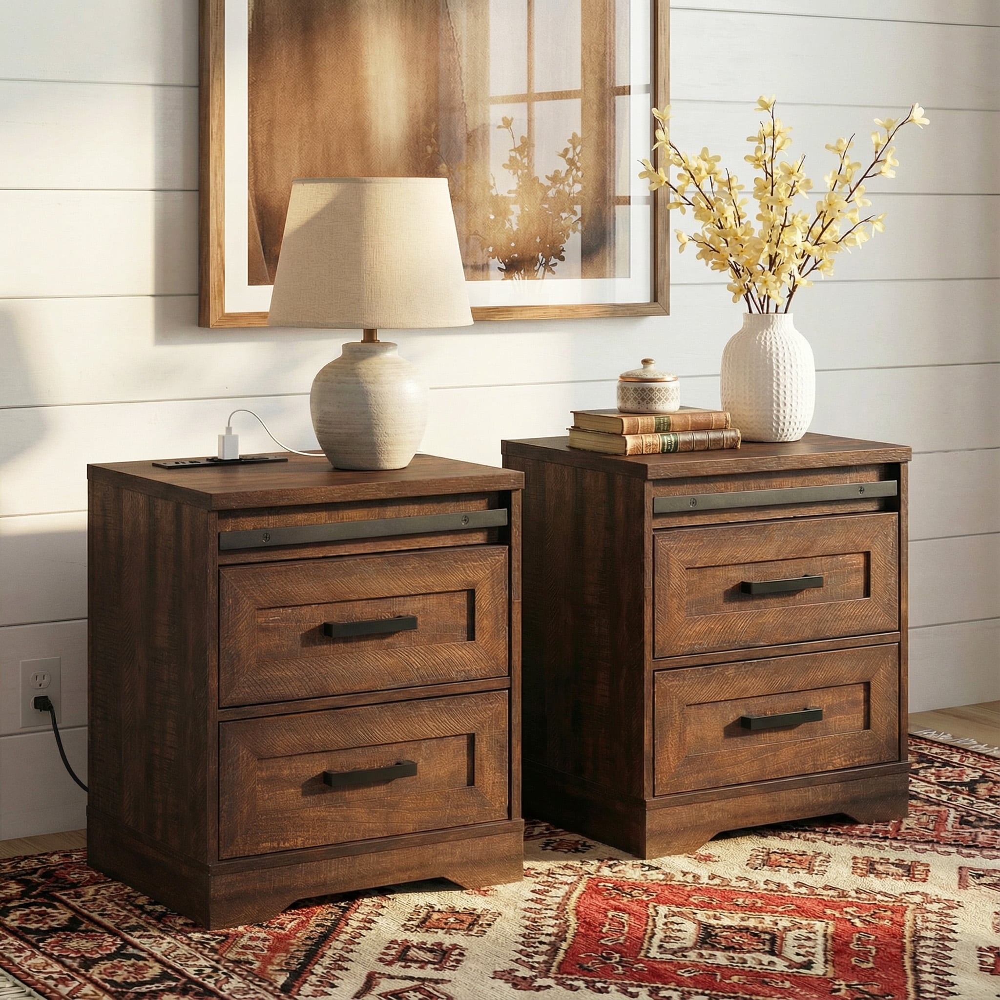 24.3-inch Tall Farmhouse Nightstand Set of 2 with Charging Station