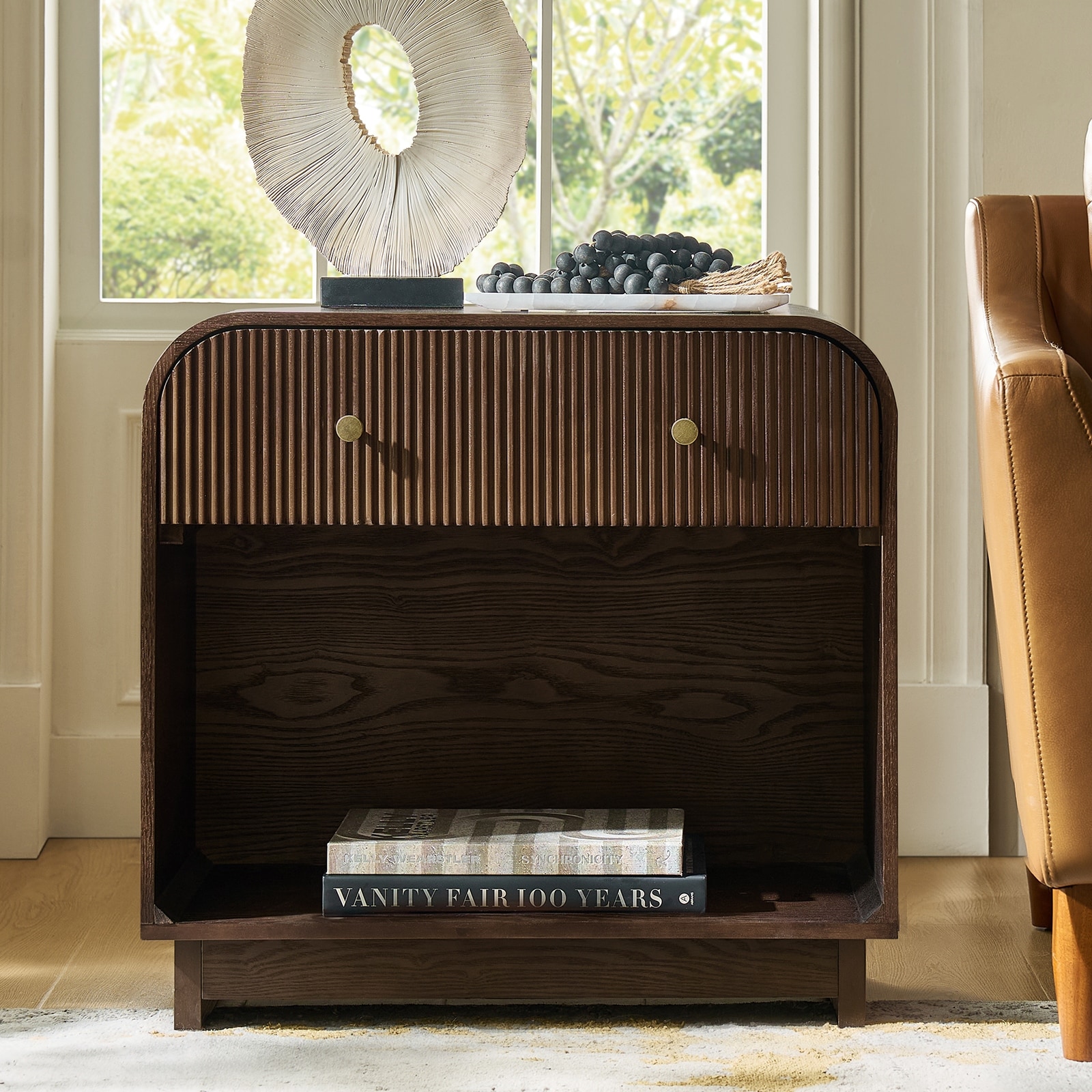 Claude Modern 1-drawer Fluted Curved End Table with Charging Station and USB ports by HULALA HOME