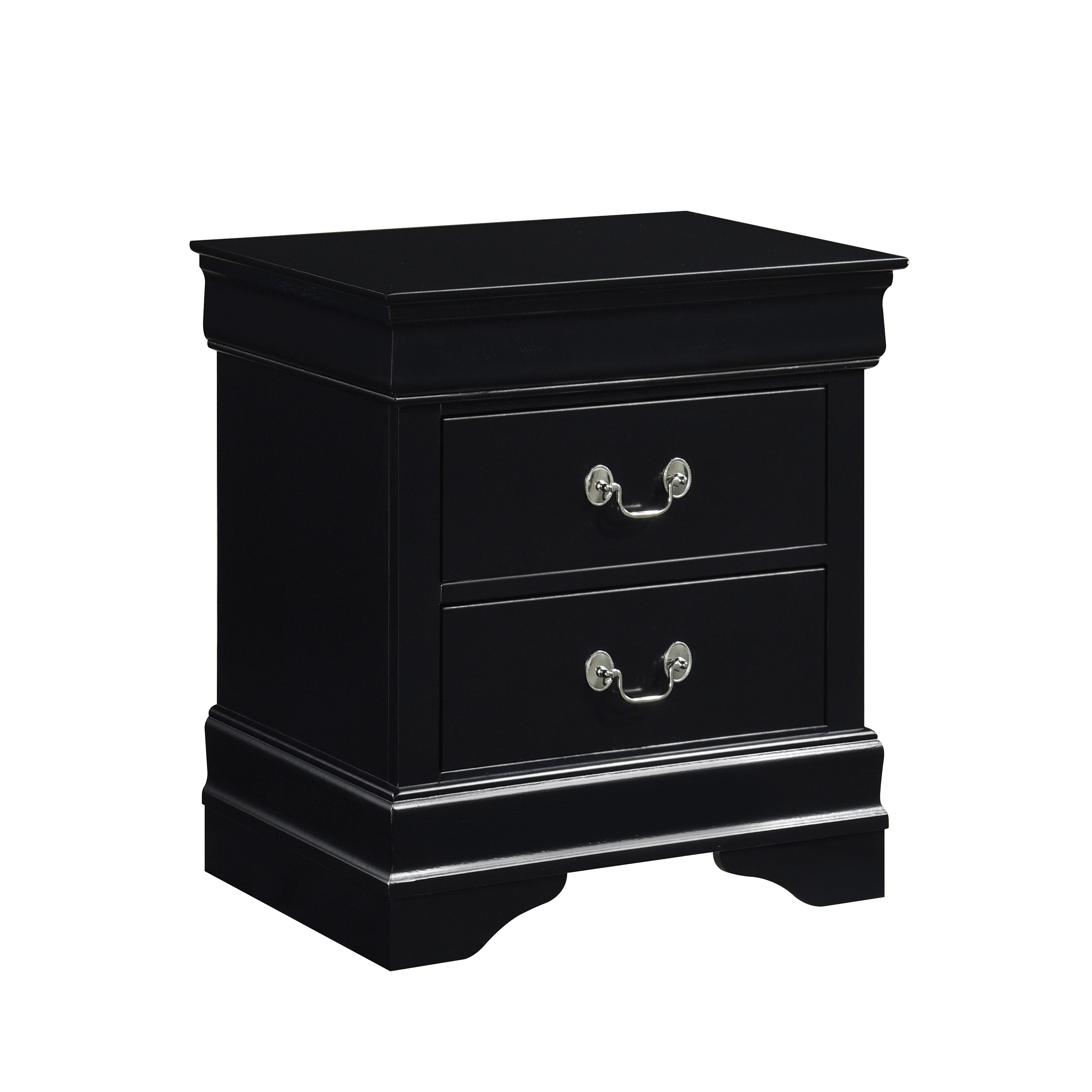 Black Finish Traditional Bedroom Wooden Nightstand 1pc Louis Philippe Style Furniture Two Drawers Storage