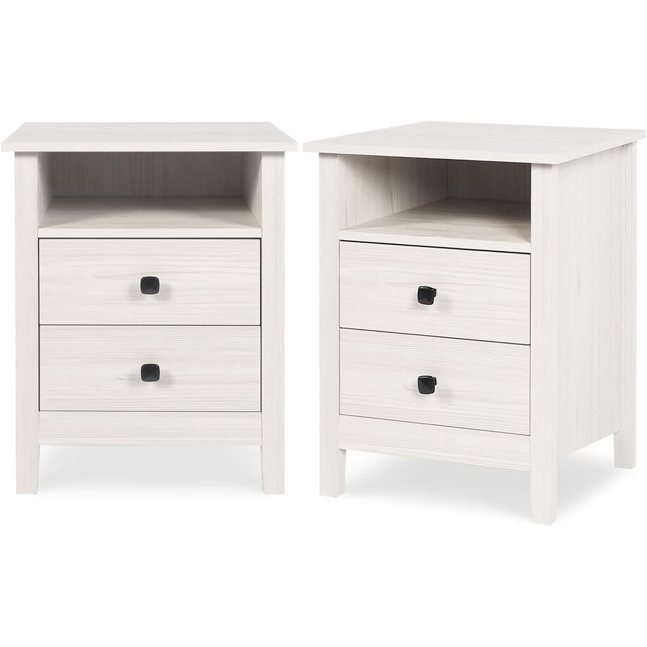 Set of 2 Wooden Night Stands with Drawers, Farmhouse Style Bedside Tables (White Wood Grain)