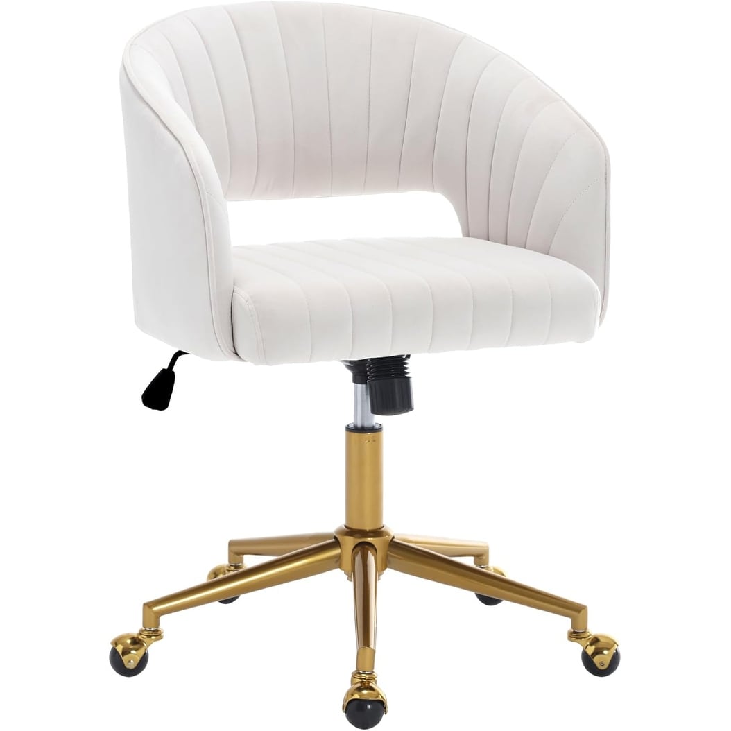 Modern Velvet Swivel Desk Chair with Gold Base, Ergonomic Height Adjustable Armchair for Office, Living Room, Study, or Vanity
