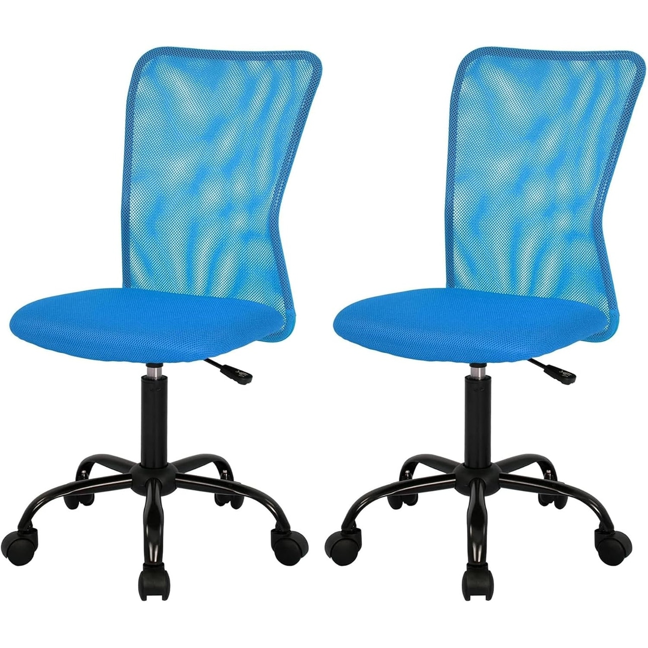 Mid Back Mesh Office Chair with Lumbar Support, Adjustable Height, Breathable Seat & Smooth Casters (Pack of 2, Blue)