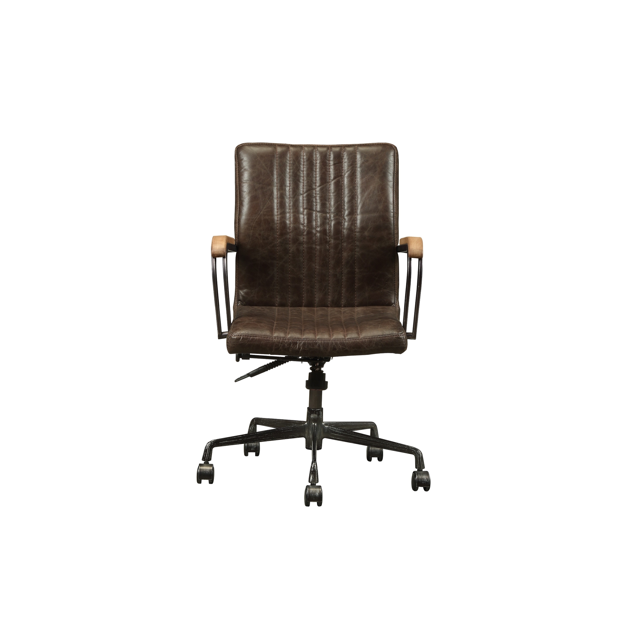 Antique Brown Leather Executive Office Chair with Padded Seat, Adjustable Height and Swivel Rolling Base
