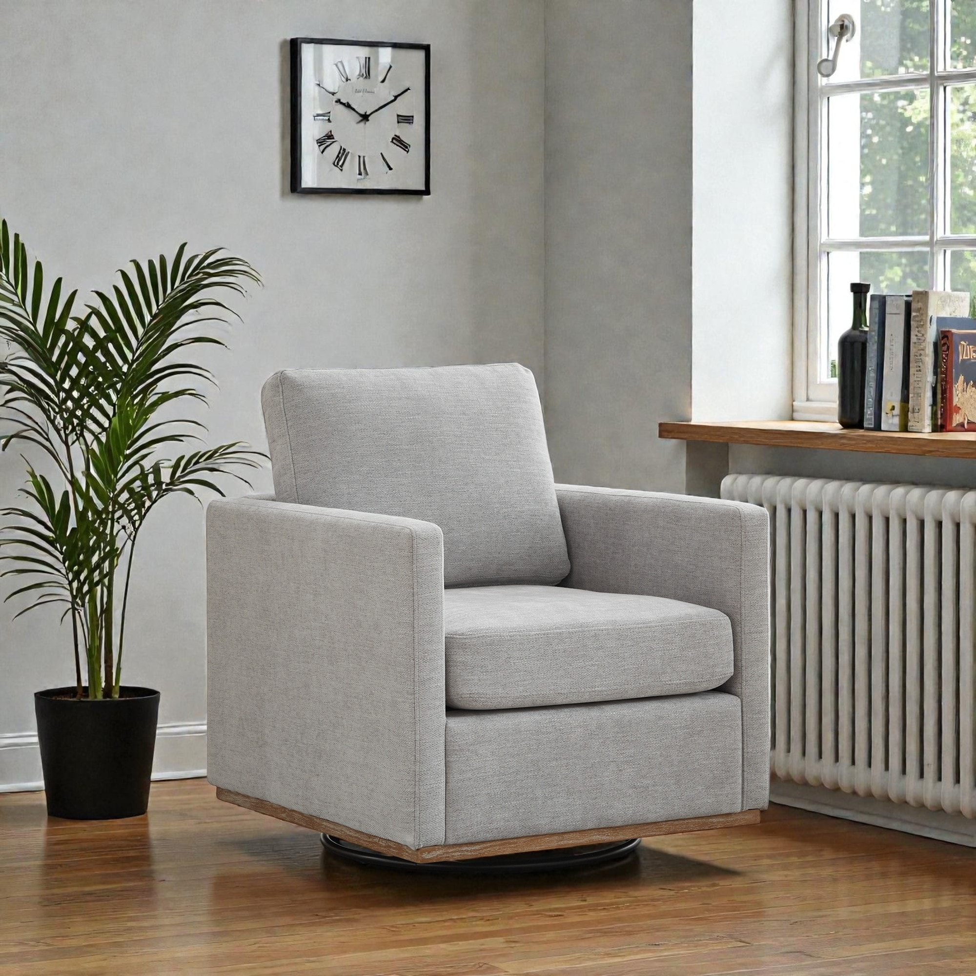 Square Swivel Accent Chair with Chenille Upholstery, Thick Seat Cushion, Removable Back Pillow and 360° Rotation