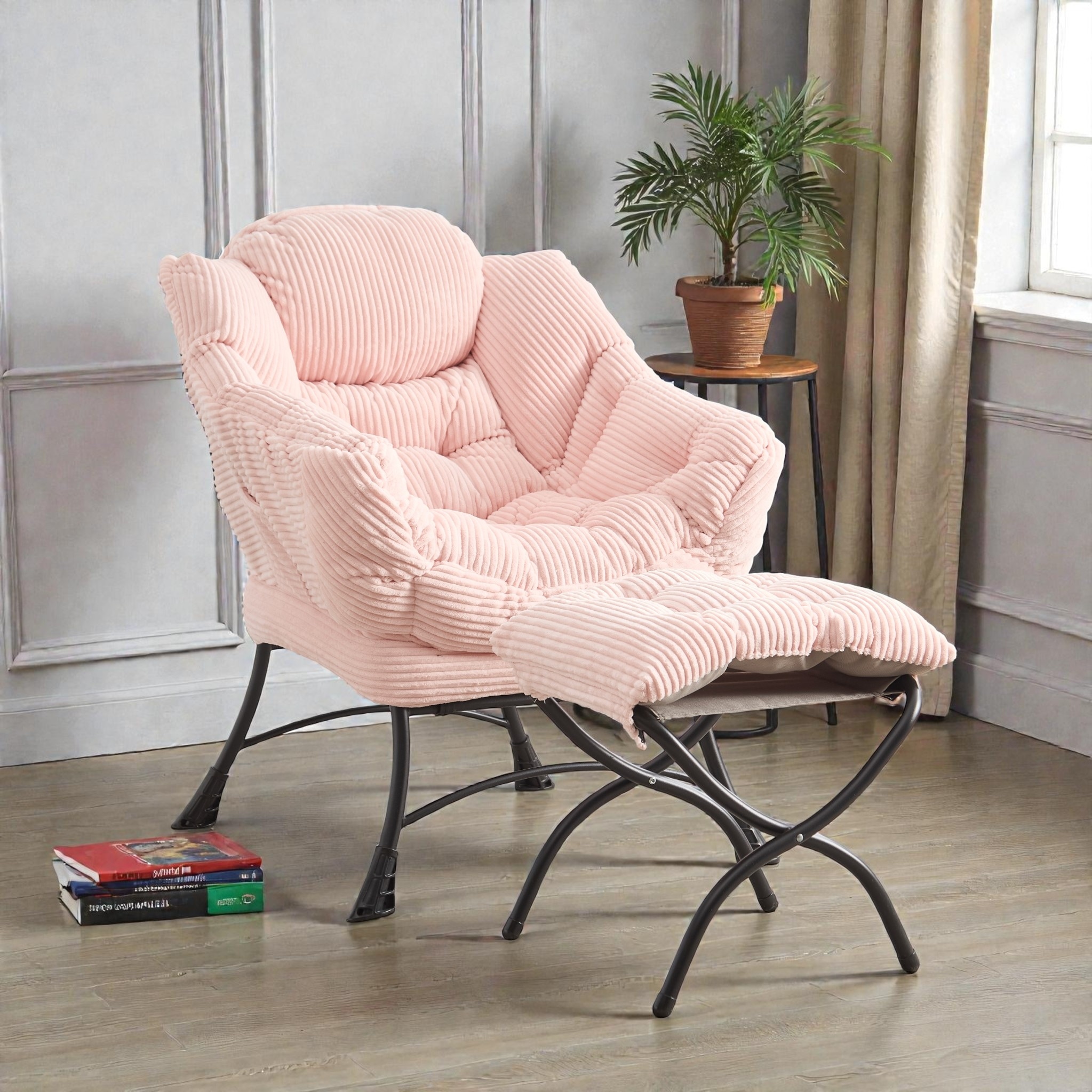 Lazy Chair with Ottoman, Upholstered Lounge Accent Chair with Armrests and Side Pocket, Reading Chair with Footrest