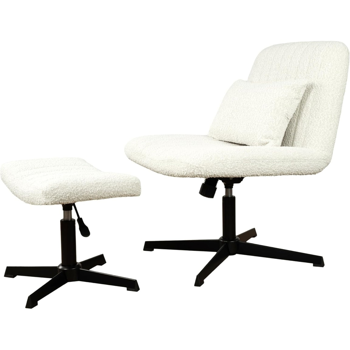 Swivel Office Chair with Footstool and Lumbar Pillow, Adjustable Height, Armless Design, Beige