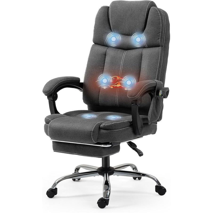 Ergonomic Reclining Massage Office Chair with Heat, Footrest & 6 Vibration Points