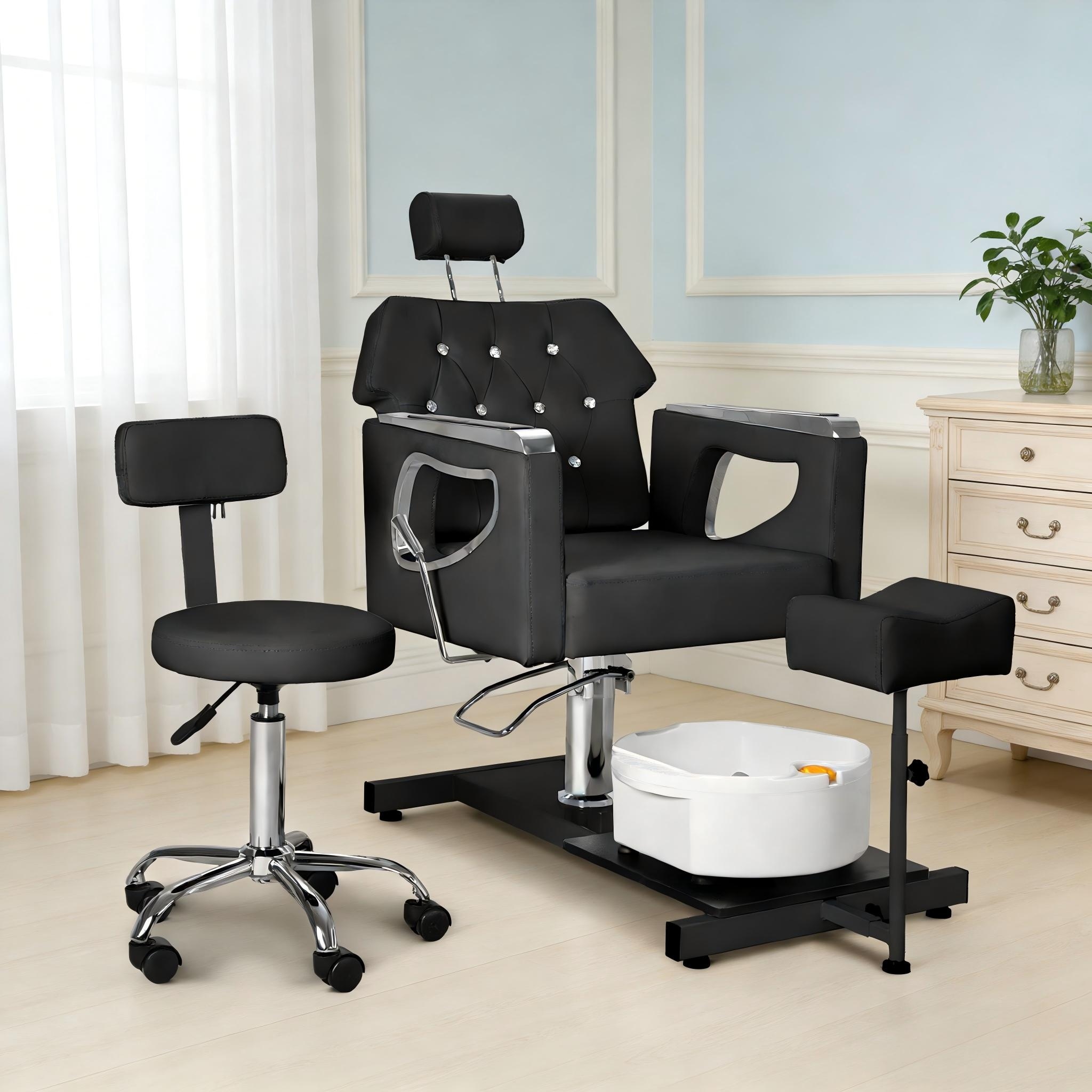 Pedicure Chair with Foot Spa Stool with Adjustable Pedicure Stand