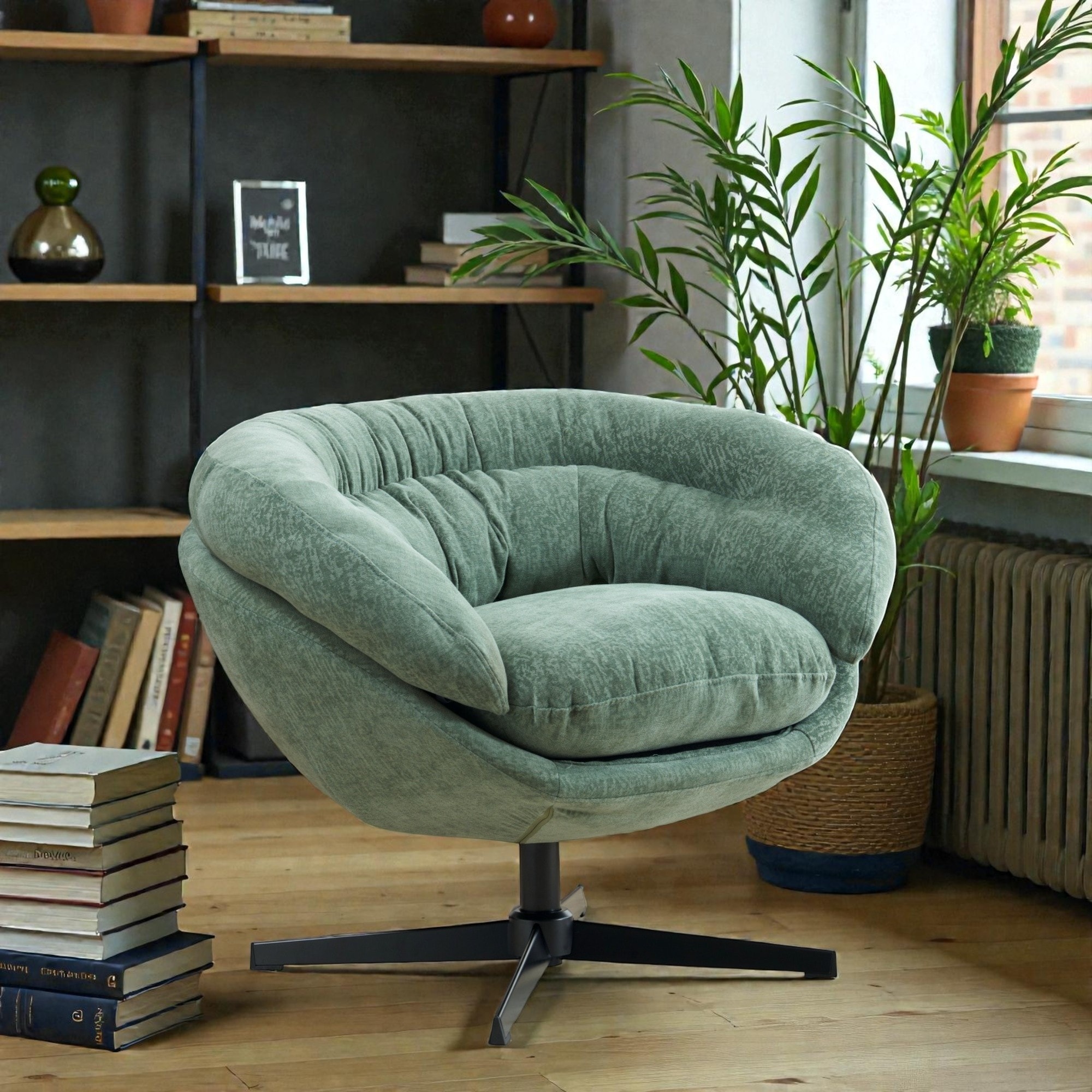 Chenille Swivel Accent Chair, 360°Round Club Office Chair with Removable Cushions, Desk Chair, Lounge Chair for Living Room