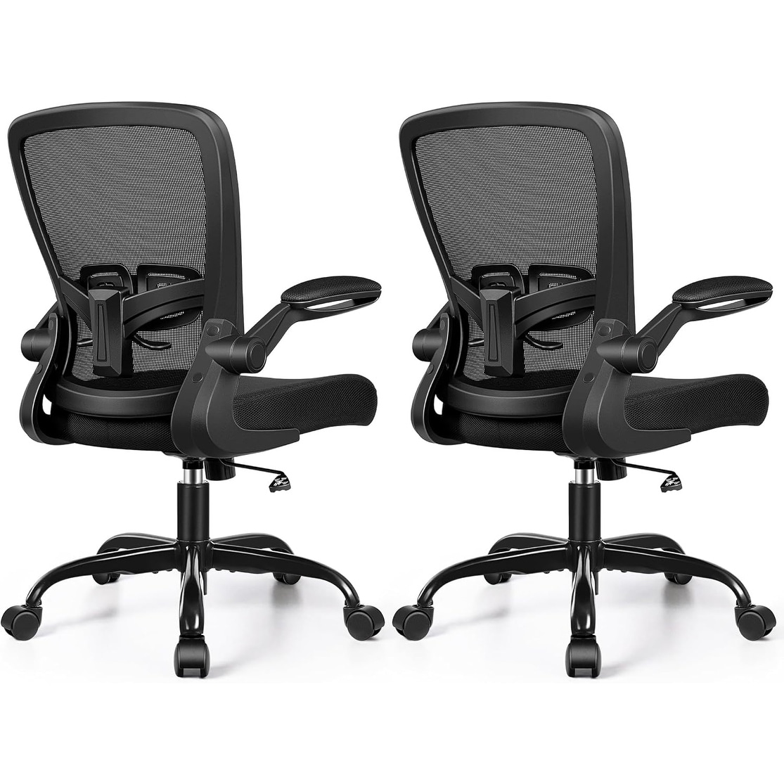 Ergonomic Office Chair with Adjustable Height, Lumbar Support, and Flip-Up Armrests, Pack of 2