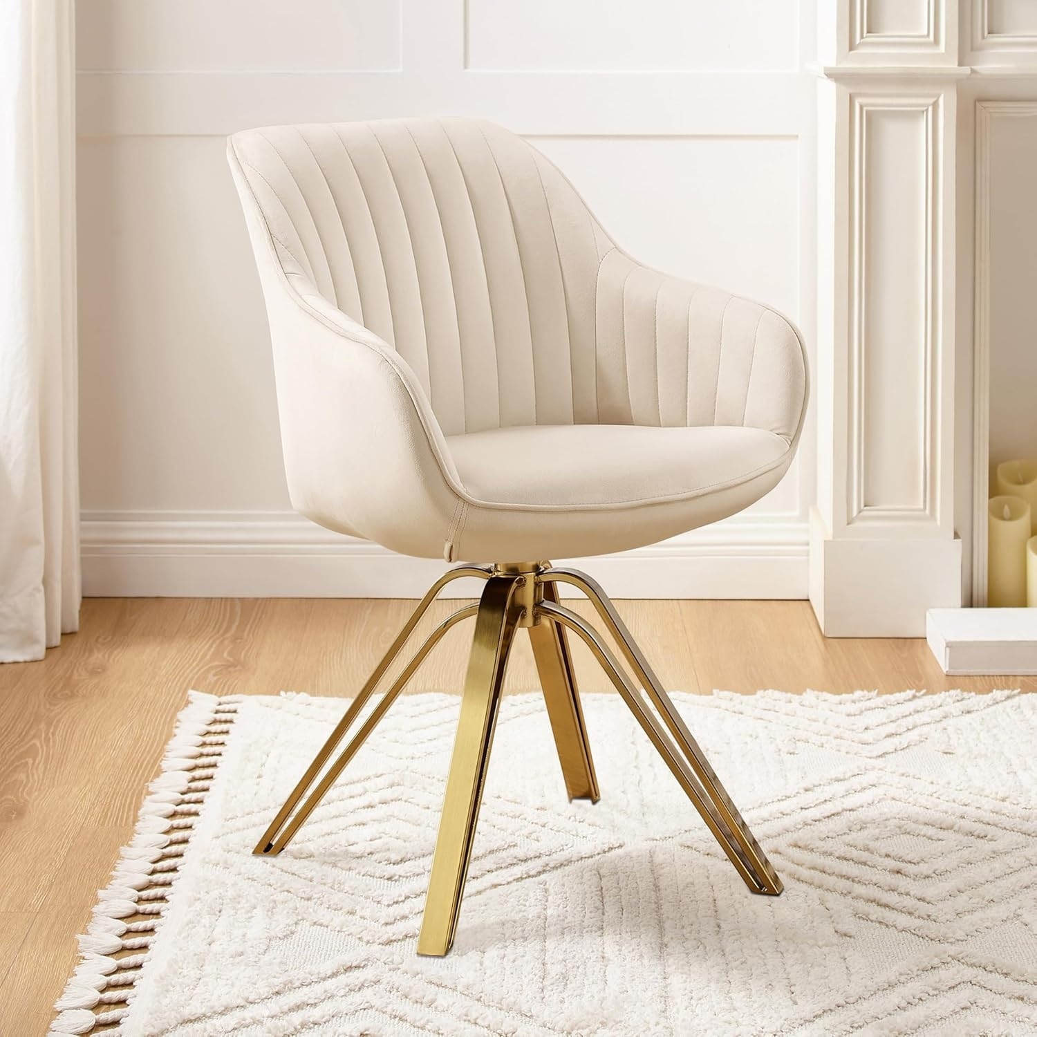 Modern Swivel Accent Chair, Fabric Upholstered Armchair with Gold Legs, Ergonomic Design, 360° Rotation, Easy Assembly
