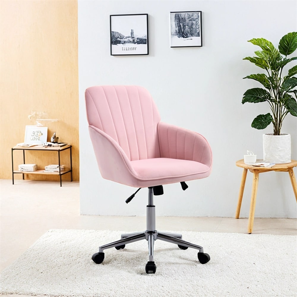 Ergonomic Pink Office Chair with Wheels, Faux Fur Comfortable Desk Chair for Women and Girls