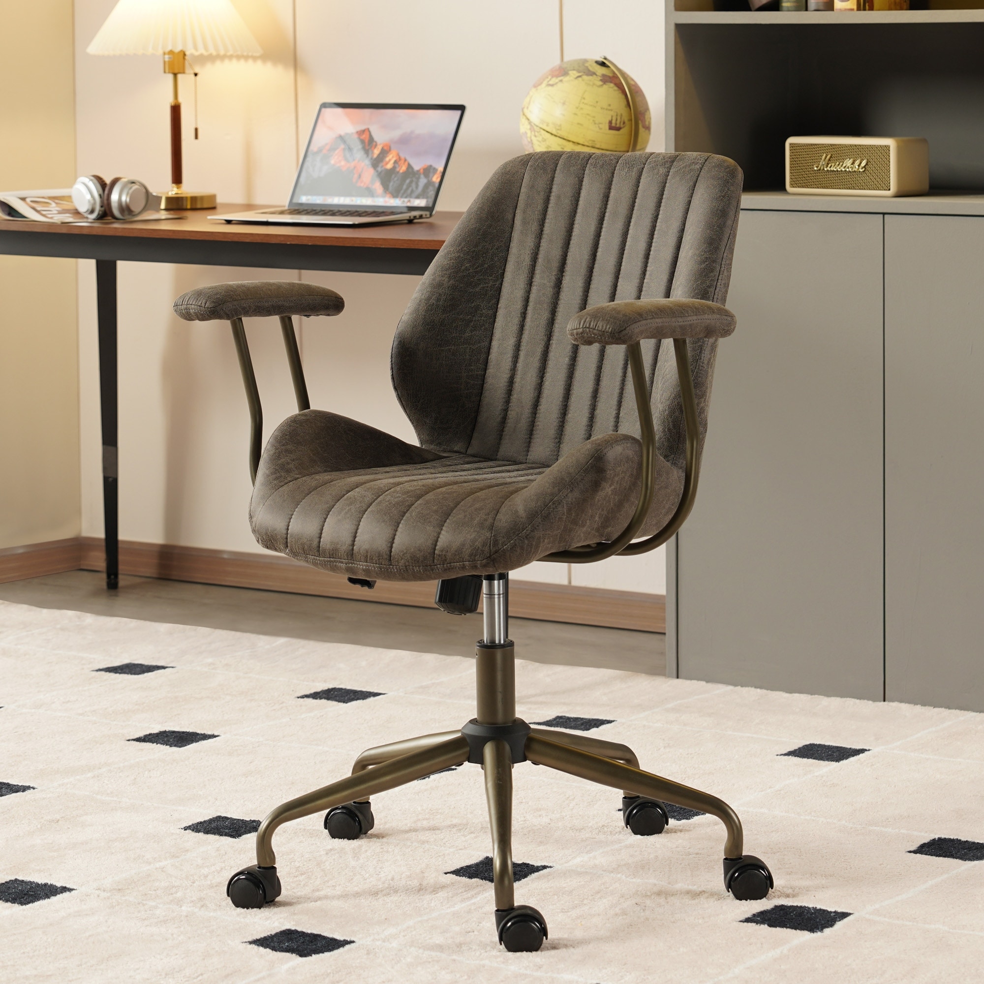 XIZZI Vintage Suede Fabric Office Chair with Armrests and Swivel Base