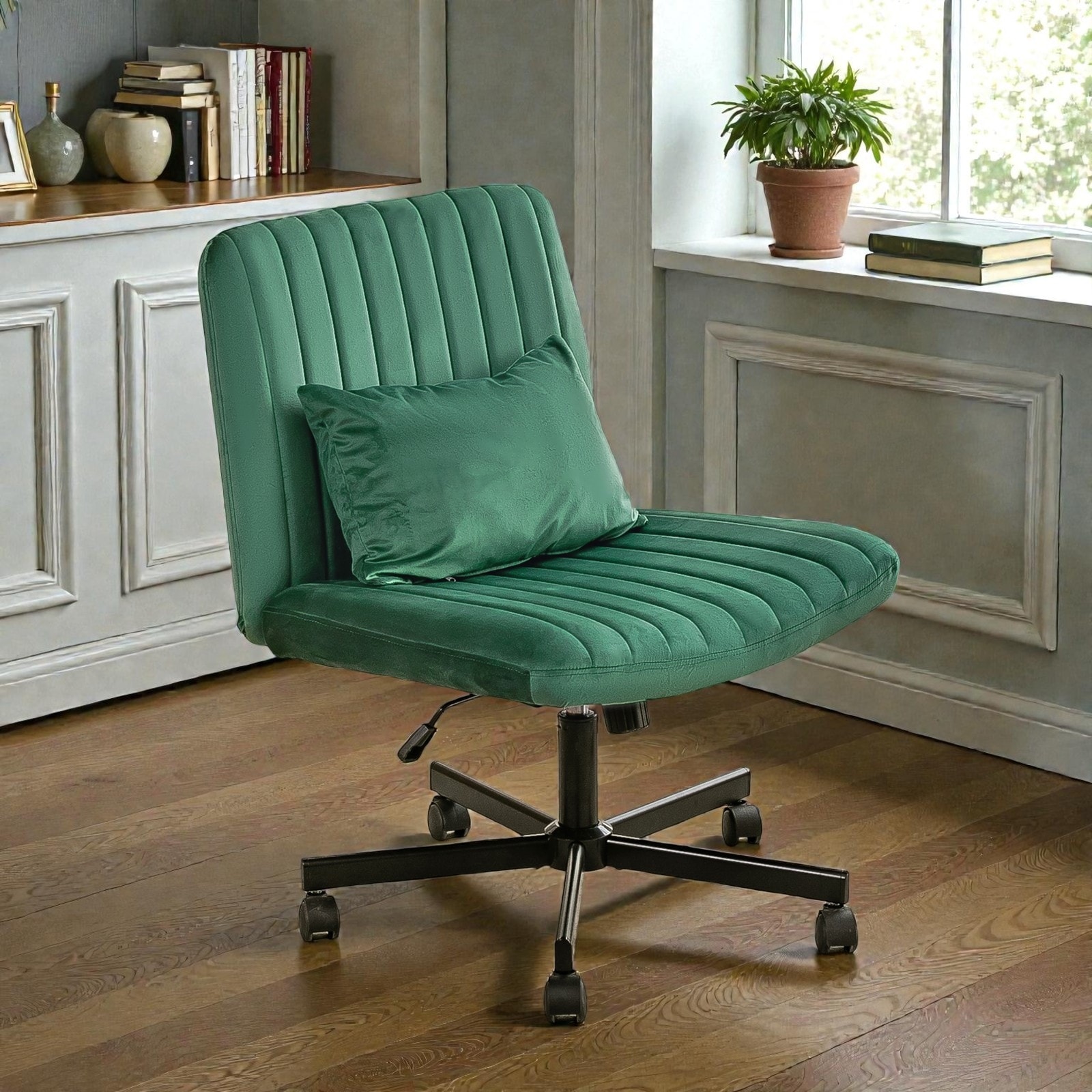 Velvet Criss Cross Office Chair with Armrests, Adjustable Height, Swivel Base, Ergonomic Padded Seat and Support Pillow for Home