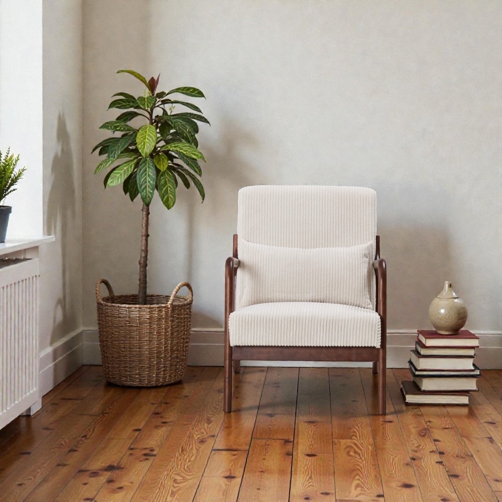 Accent Chair and Coffee Table Set, Minimalist Leisure Chair with Rubberwood Frame, Office Chair for Living Room Bedroom