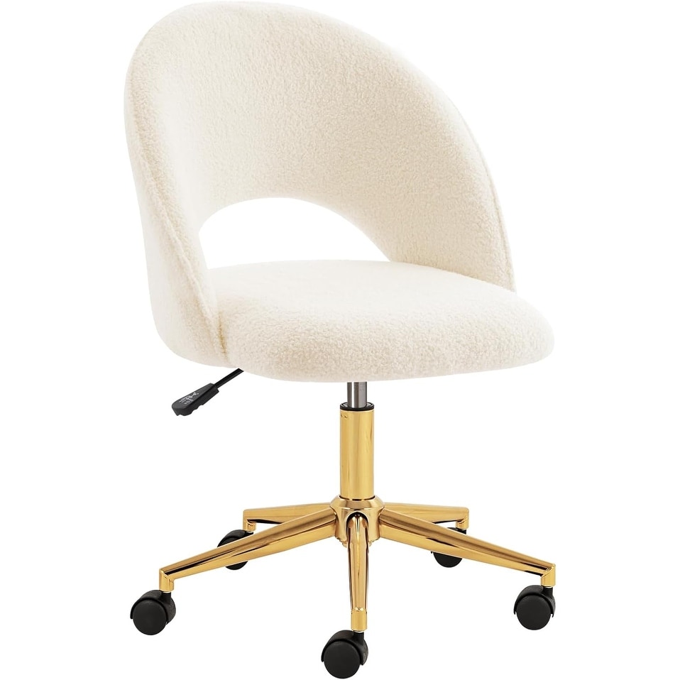 Adjustable Faux Fur Swivel Rolling Desk Chair with Gold Legs for Living Room, Bedroom, and Small Spaces