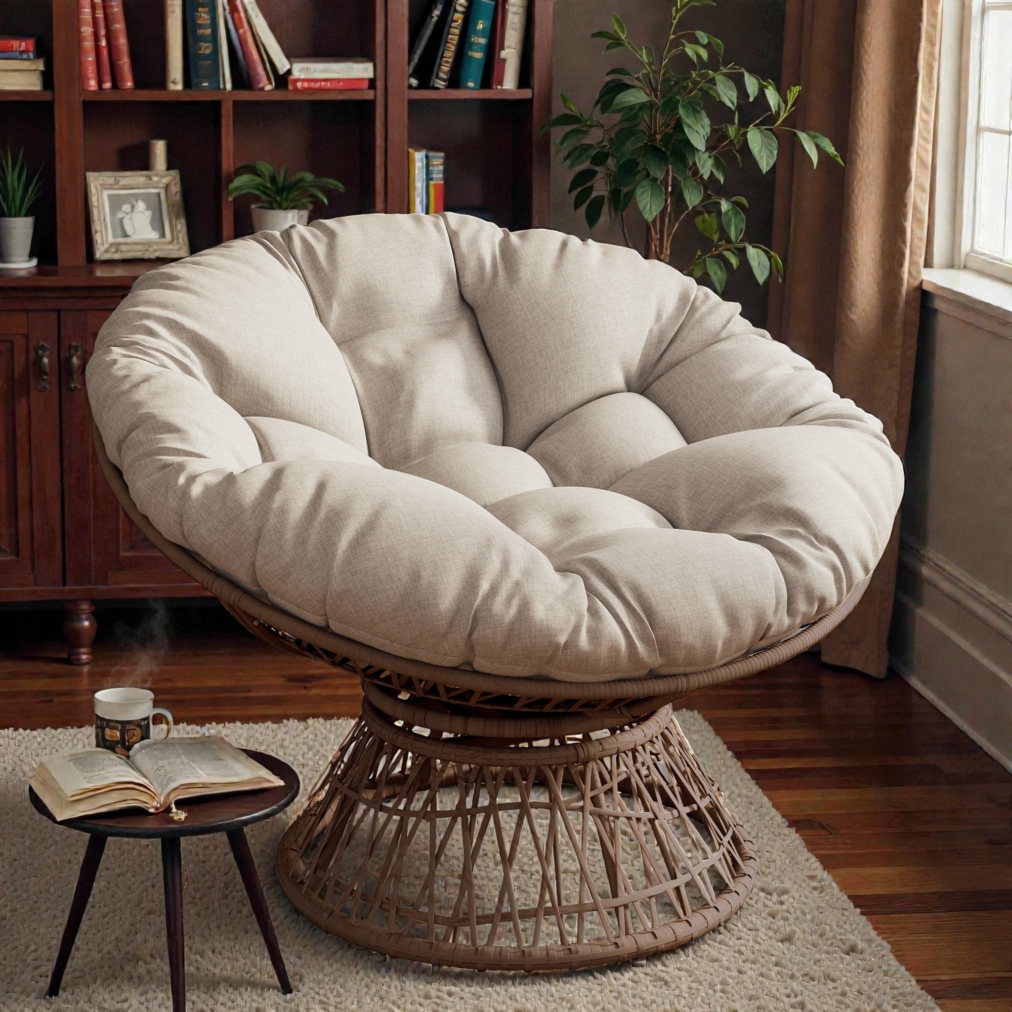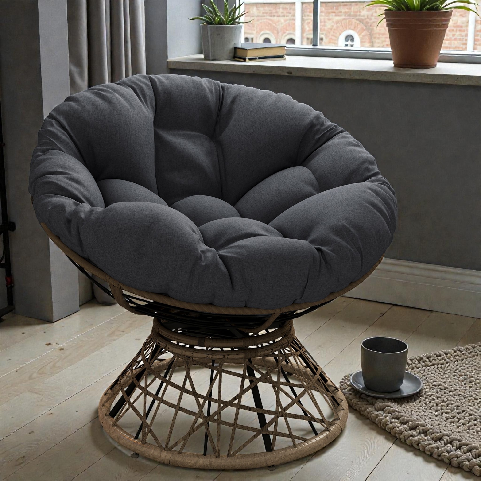 Ergonomic Wicker Swivel Chair with Thick Cushion, Office Chair, Lounge Accent Chair with 360 Degree Rotation for Living Room