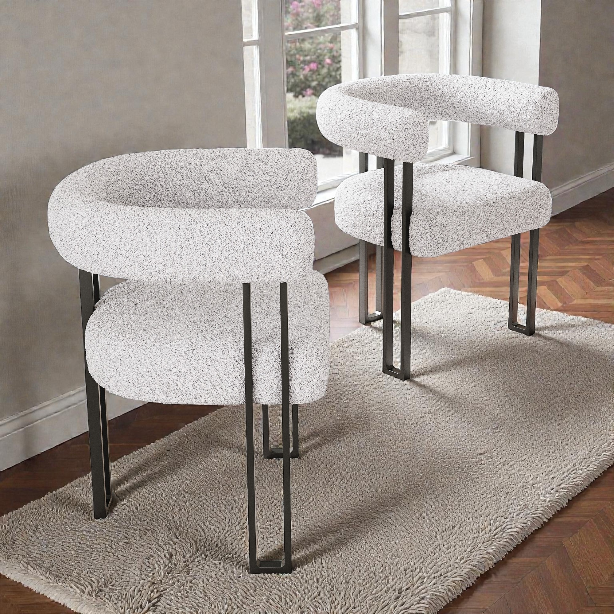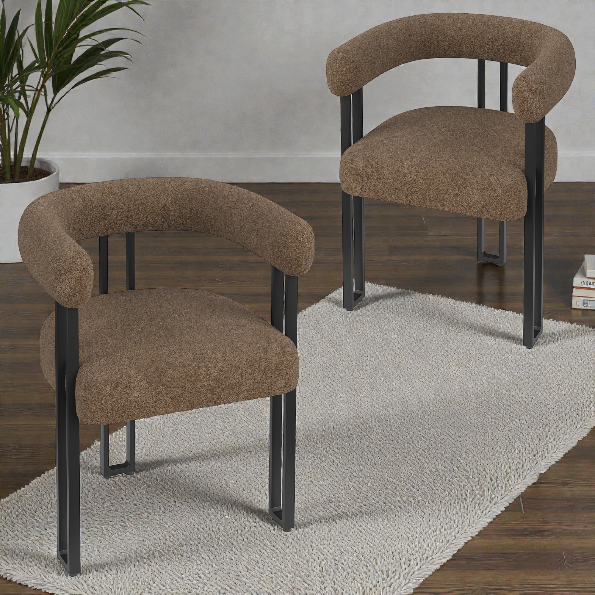 Set of 2 Upholstered Dining Arm Chairs with Metal Frame, Accent Armchairs with Stain Resistant Fabric, Office Chair