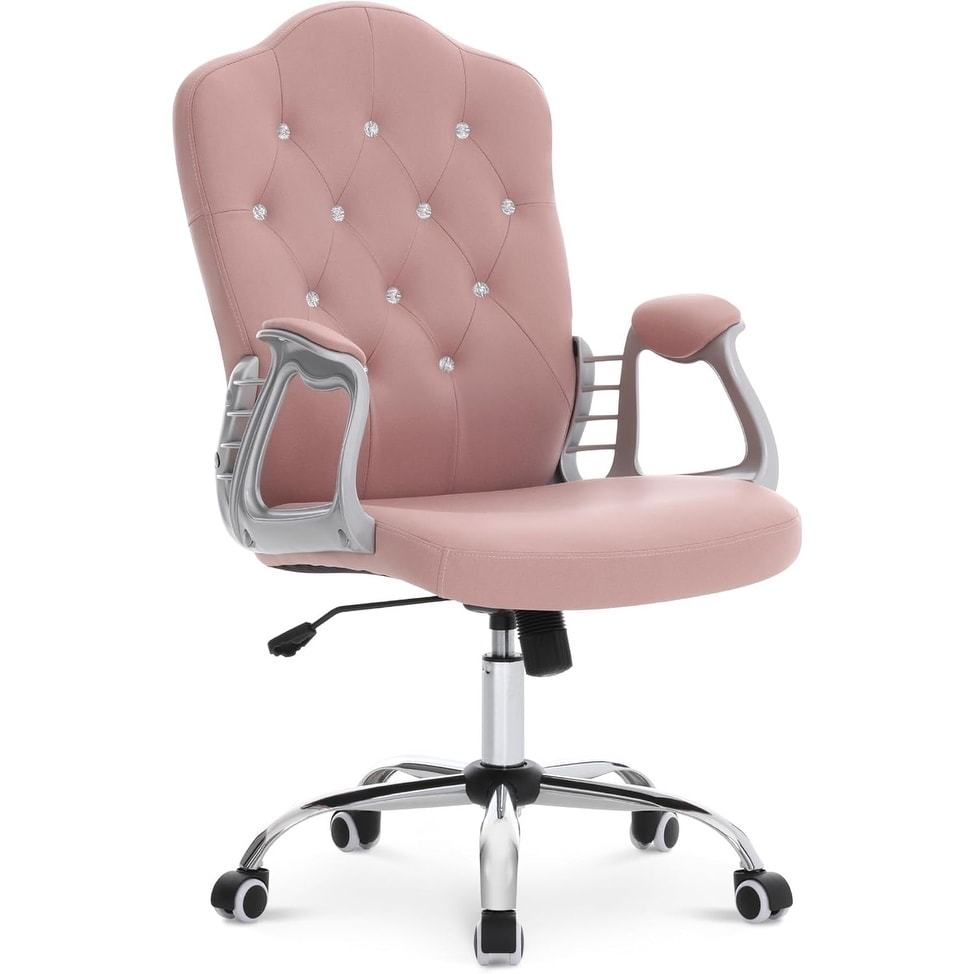 GDFStudio - Modern Chenille Tufted Upholstered Office Chair with Chrome Metal Base with Nailhead Trim and High-Rebound Cushion