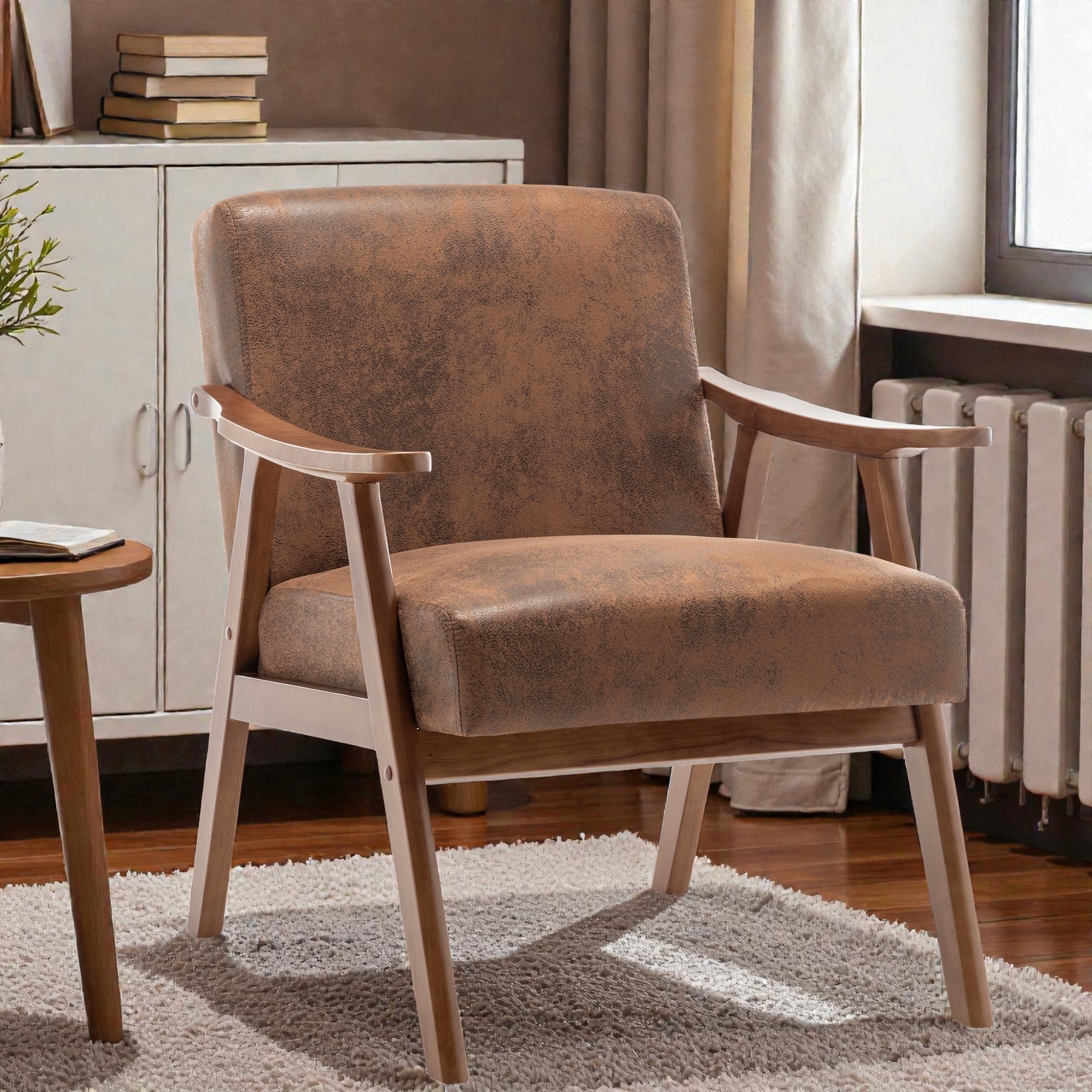 Tech Cloth Accent Chair with Solid Rubberwood Frame, Wingback Lounge Reading Chair, Desk Chair, Office Chair for Living Room