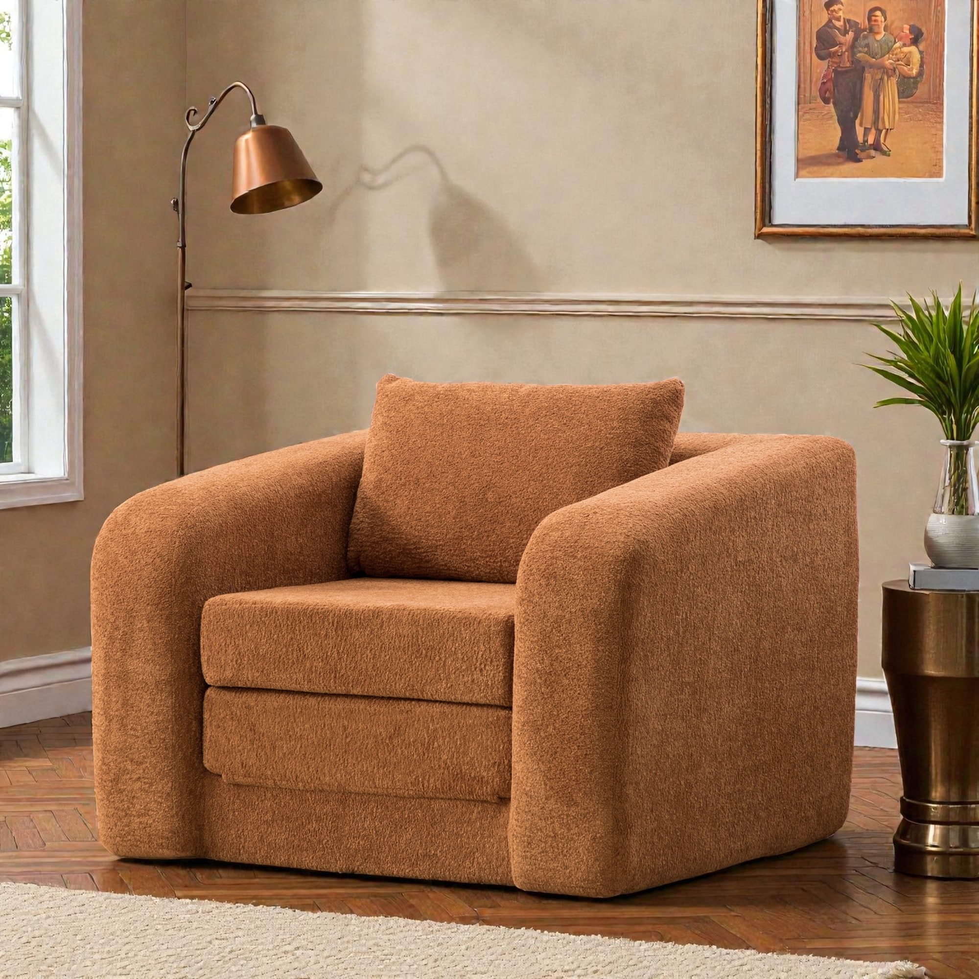40 Inch Foldable Accent Chair Sofa Bed, Convertible Chenille Single Sleeper Chair with Armrest Backrest and Pillow,Lounge Chair